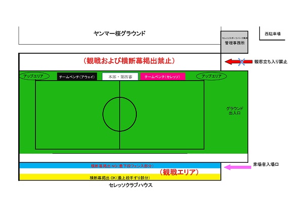 ・入場口および観戦場所は、セレッソ大阪クラブハウス側となりますので、ご注意願います。