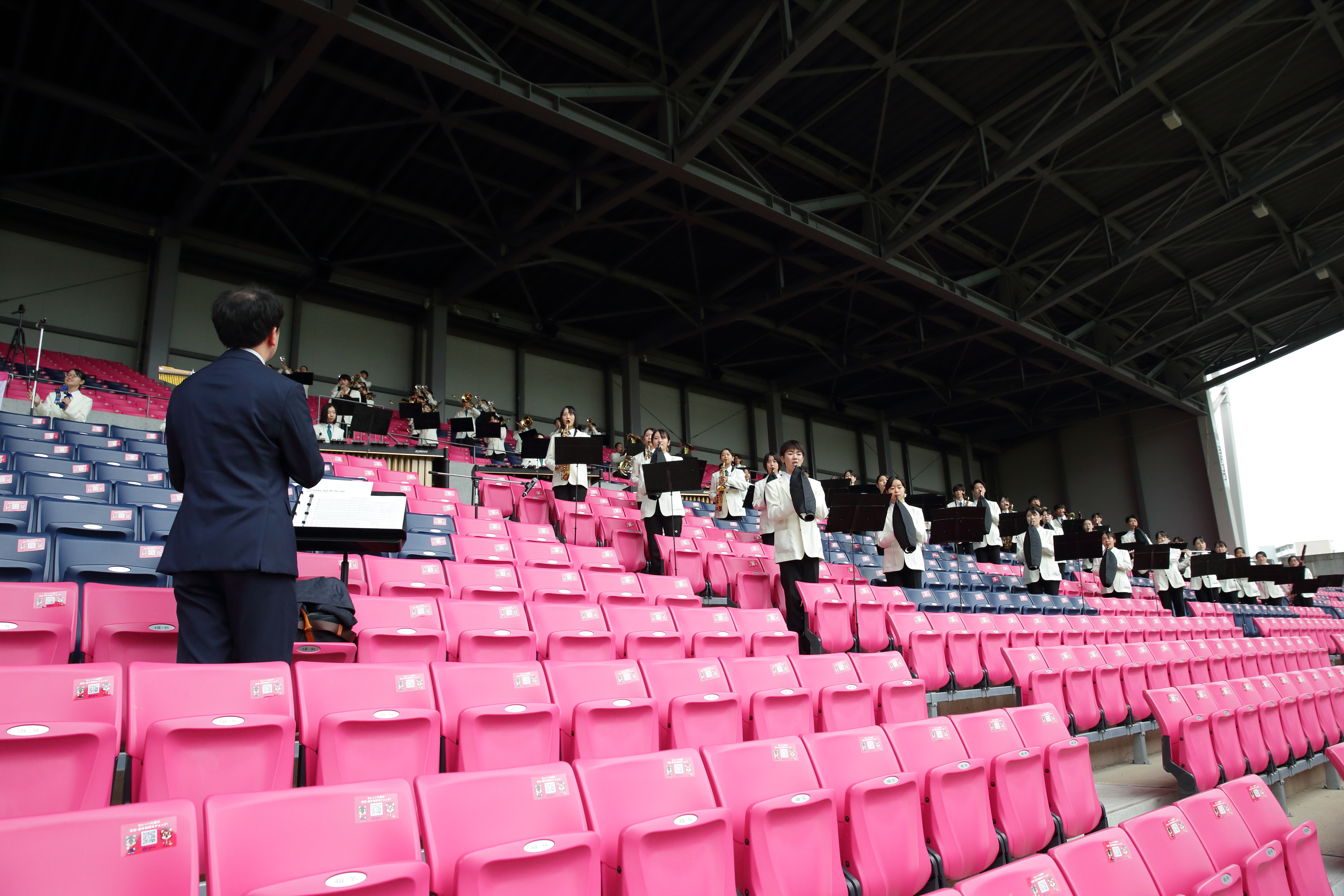 吹奏楽コンクールやマーチングコンテストで数々の賞を獲得する吹奏楽部が試合前に演奏披露!