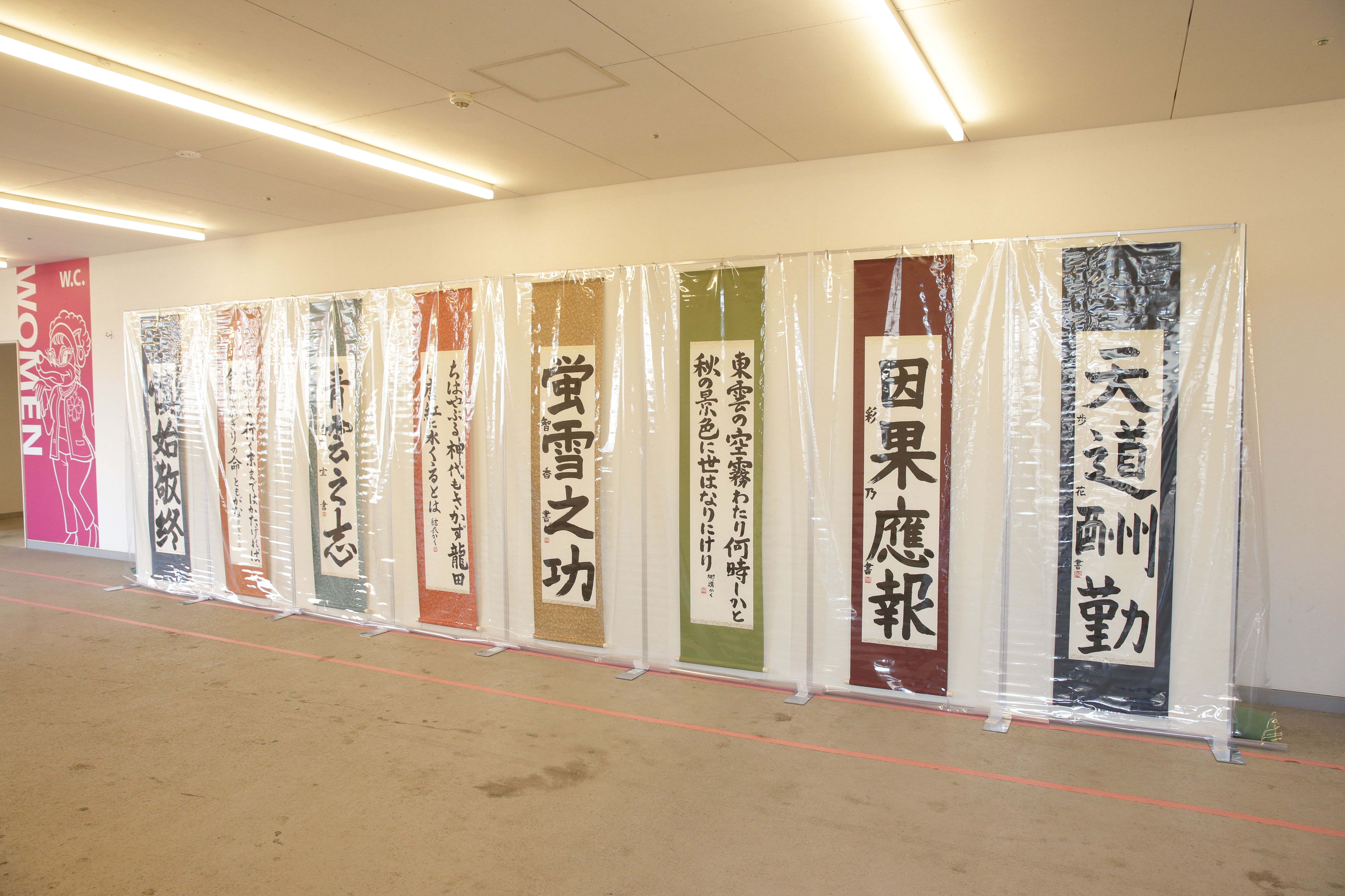 ナカバヤシゲート付近 室内ラウンジにて、書道部、写真部の作品展示を行います。