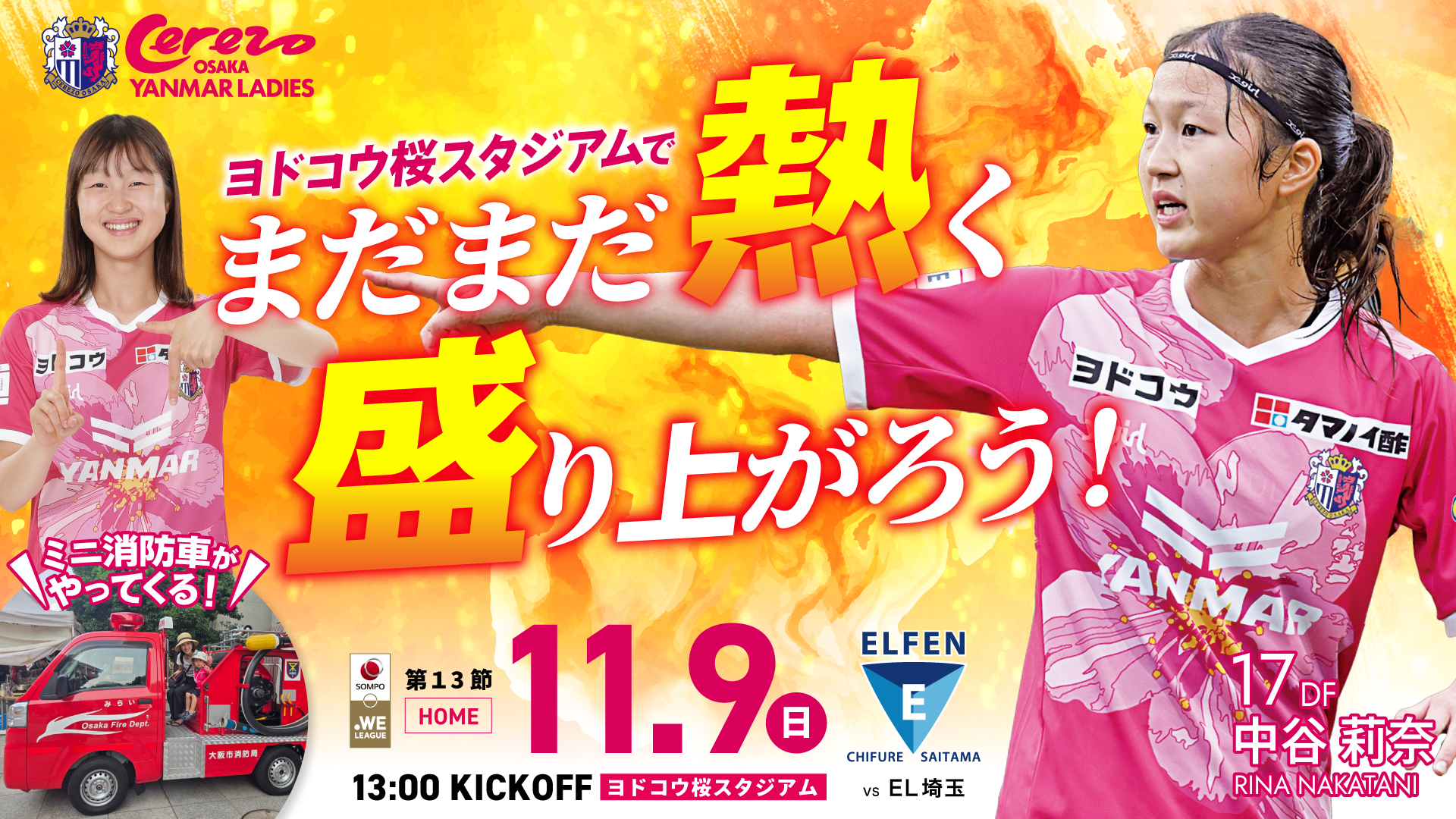 11月9日(日)13:00キックオフ(先行入場11:00/一般入場11:15開始予定)@ヨドコウ桜スタジアム