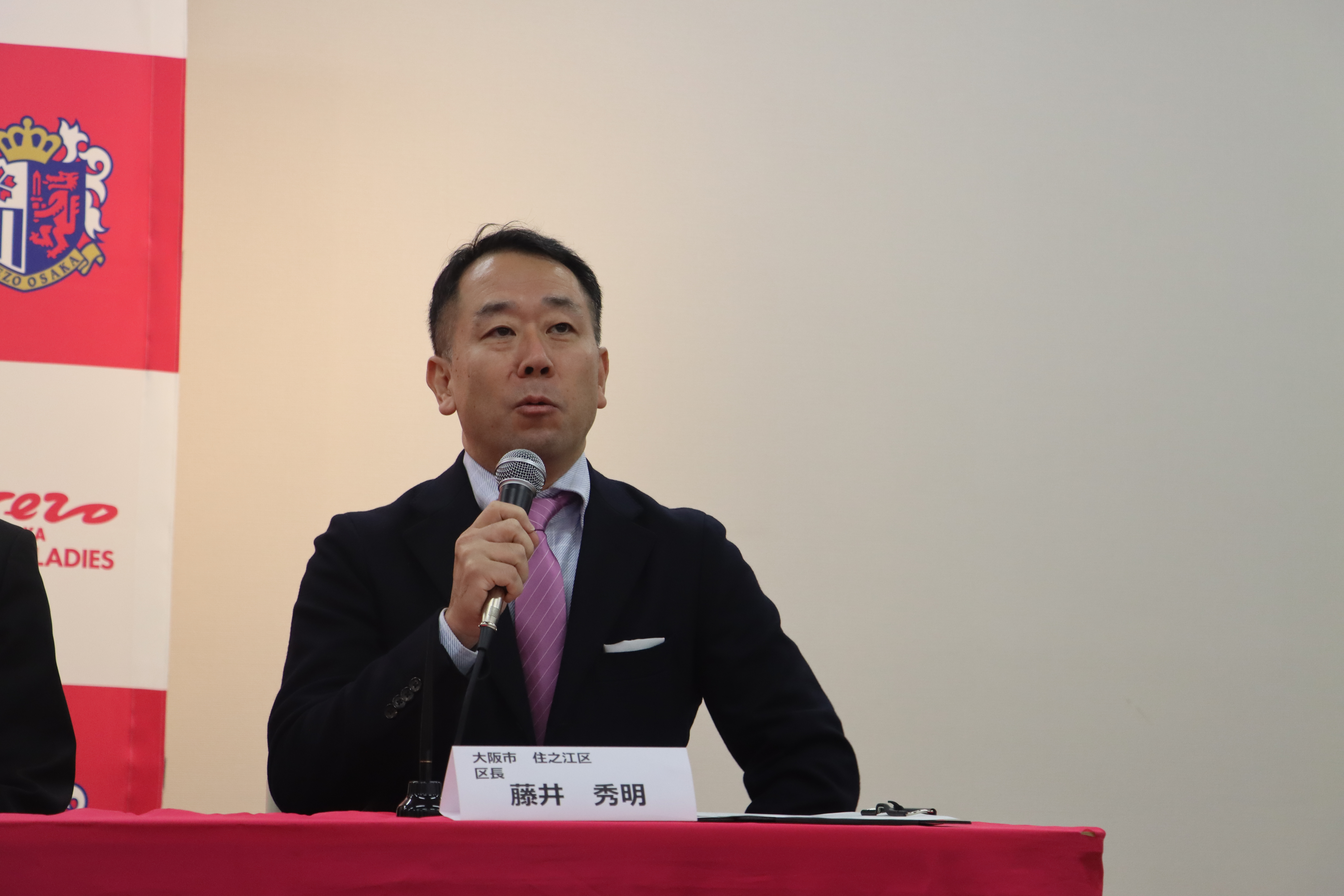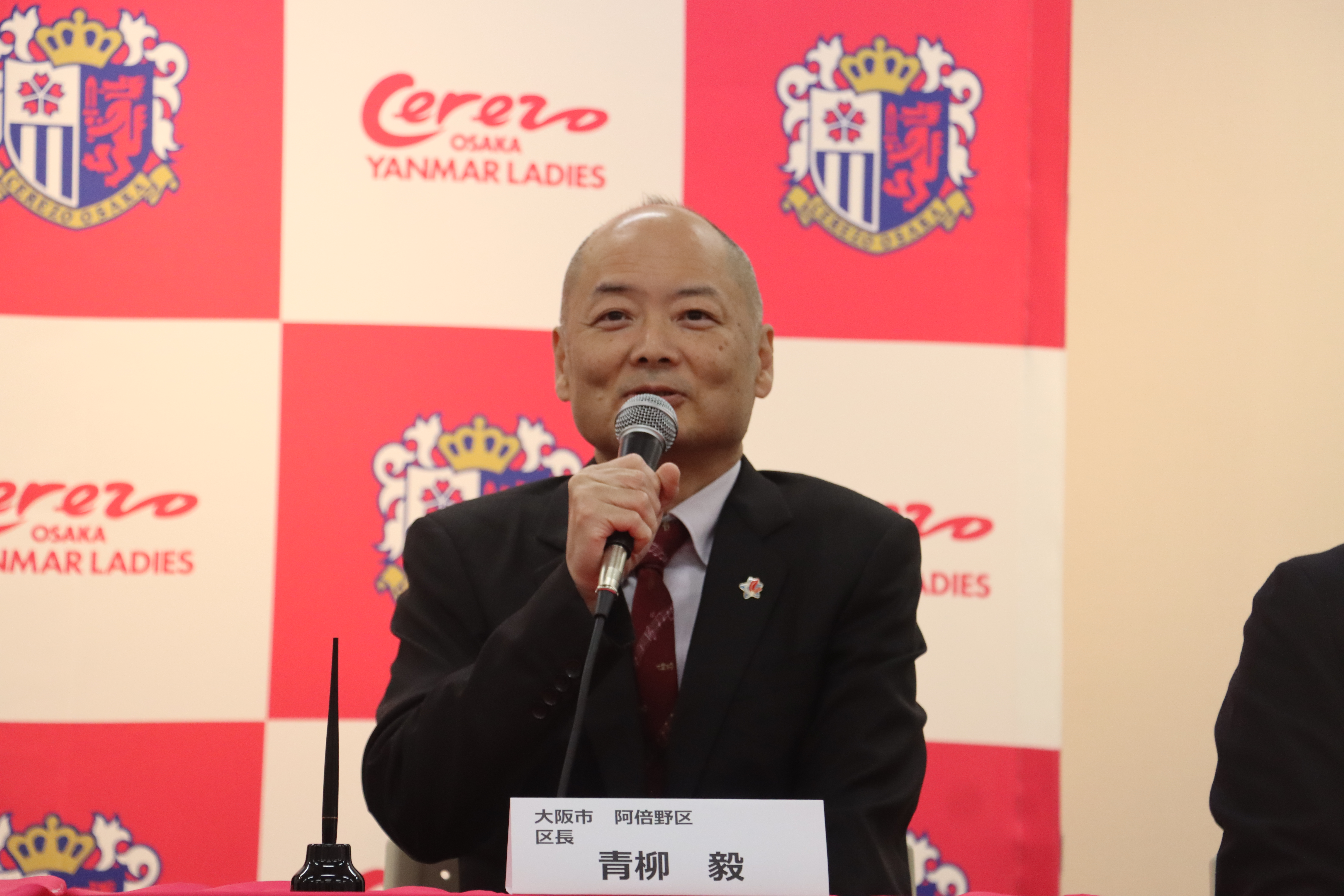 今後は大阪市内の各区とも連携をさらに強化し、より多くの方々に女子サッカー、そしてセレッソ大阪ヤンマーレディースの活動を知っていただけるよう努めてまいります。地域とともに歩むクラブとして、大阪の皆さまに愛されるチームを目指してまいります。最後になりますが、この協定が阿倍野区・住之江区、そしてセレッソ大阪ヤンマーレディースにとって新たな一歩となり、地域に明るい未来をもたらすことを心より祈念いたします。今後ともご支援、ご声援のほど、どうぞよろしくお願いいたします」