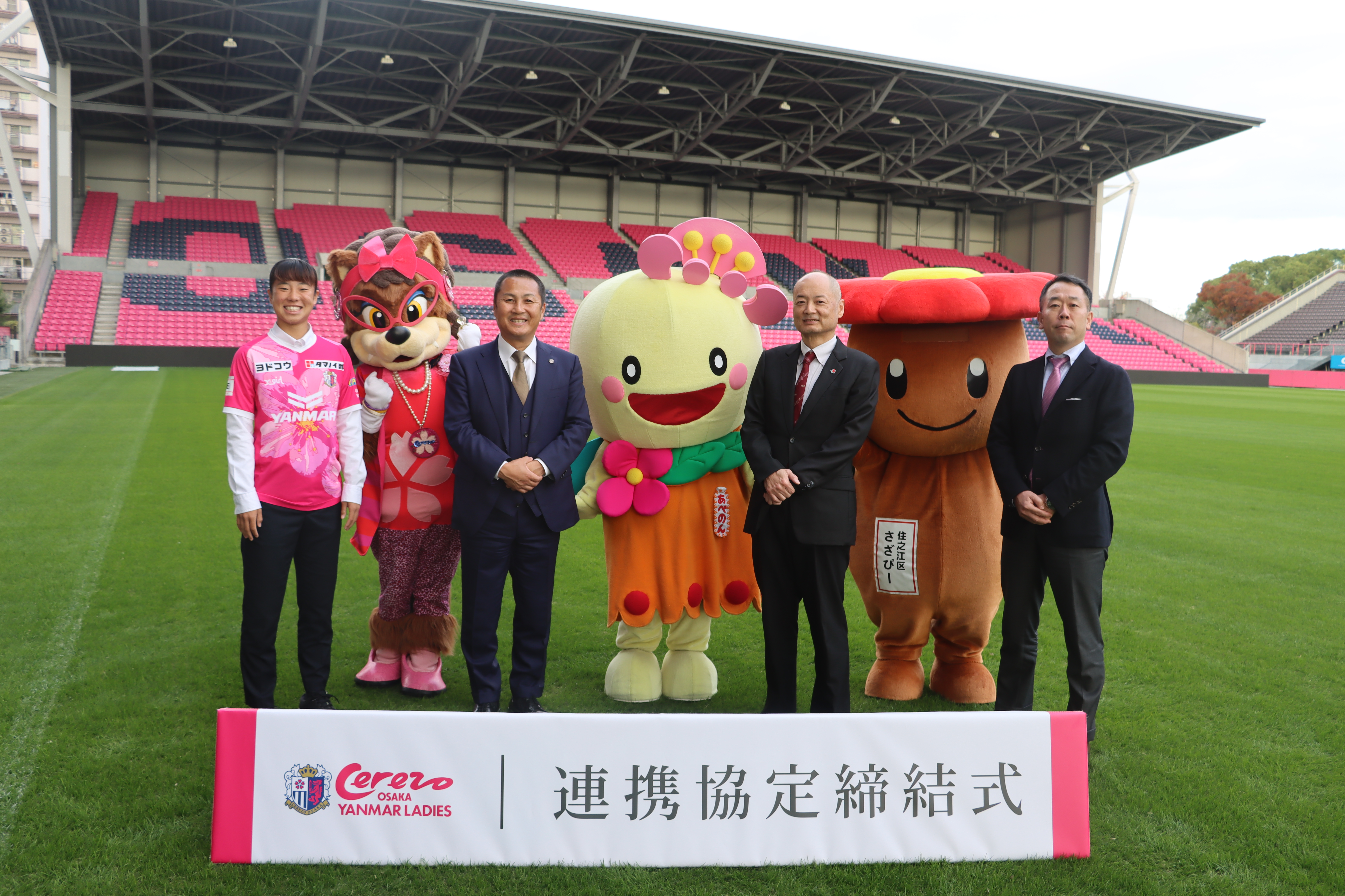 セレッソ大阪ヤンマーレディースは阿倍野区・住之江区の各区と活力ある地域社会の形成を目的として、相互に連携・協力を行うため、連携協定を締結しました。