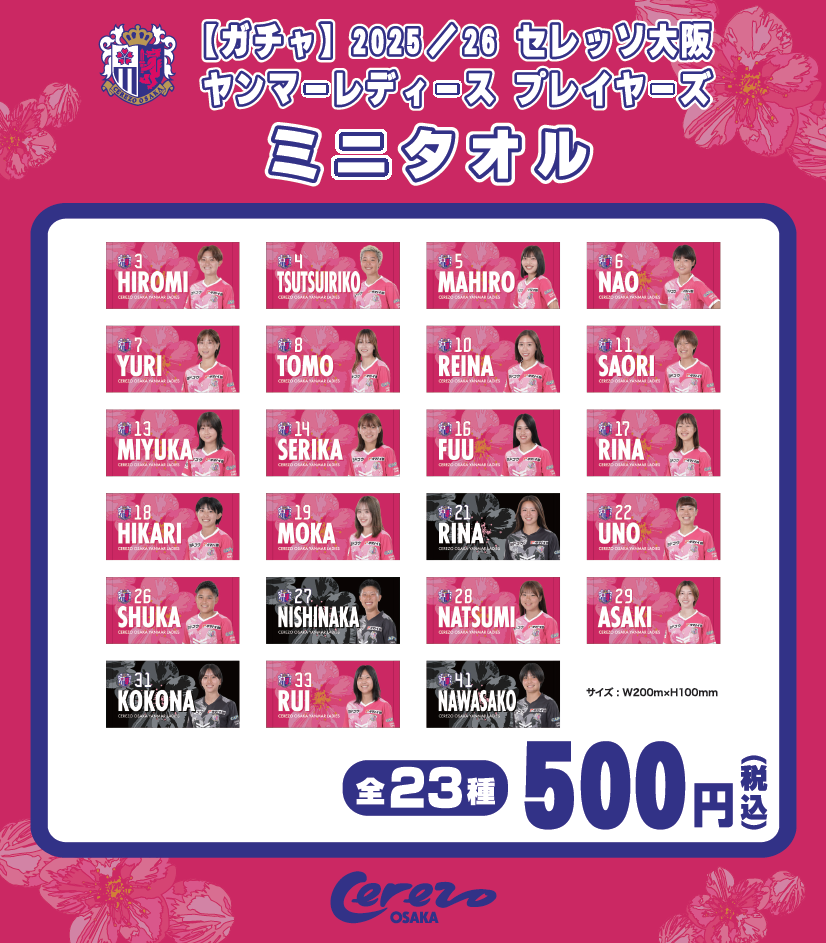 【ガチャ】2025/26 セレッソ大阪ヤンマーレディース ミニタオル (全23種)