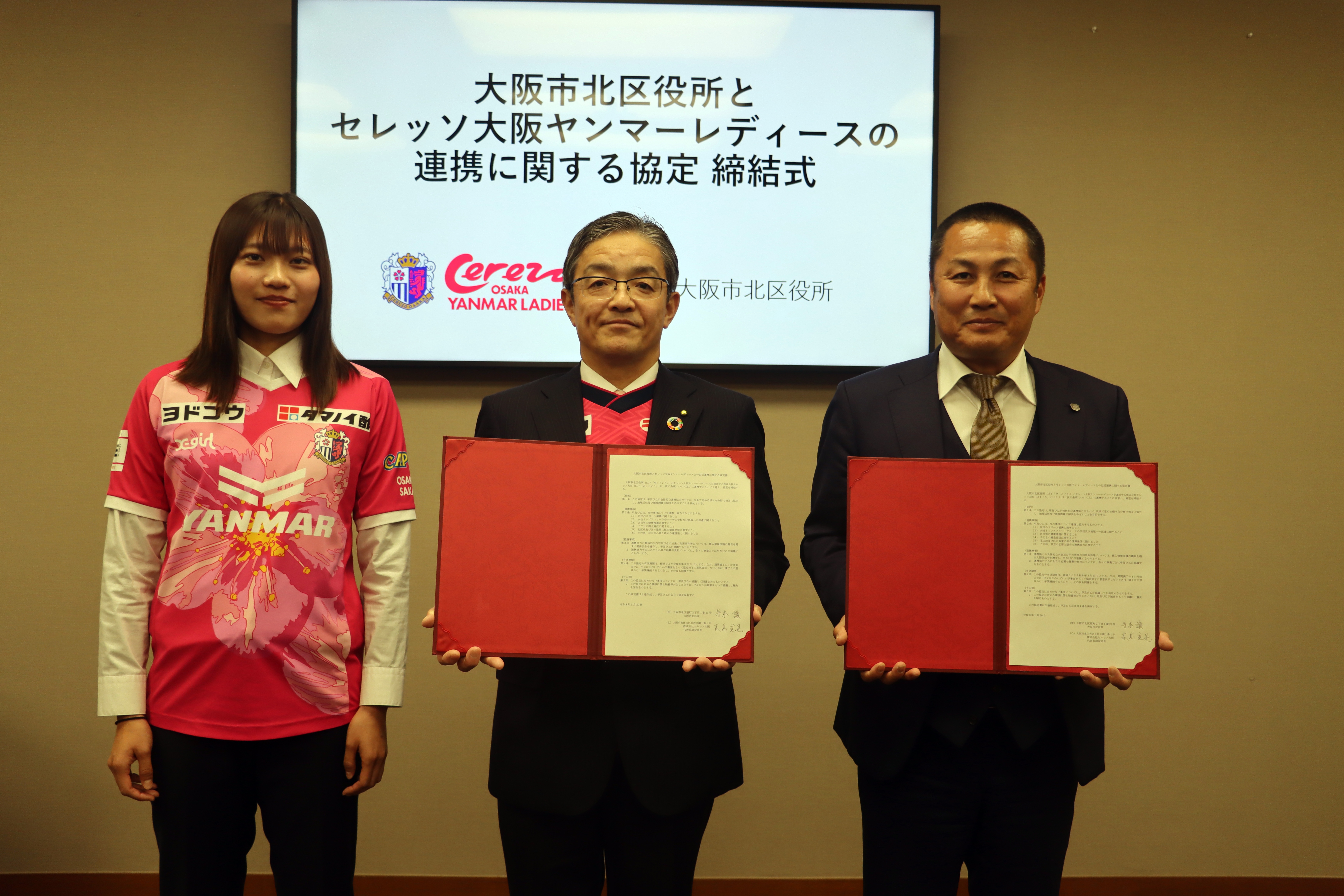 1/20(火)大阪市北区とセレッソ大阪ヤンマーレディースの連携協定締結式を実施いたしました。