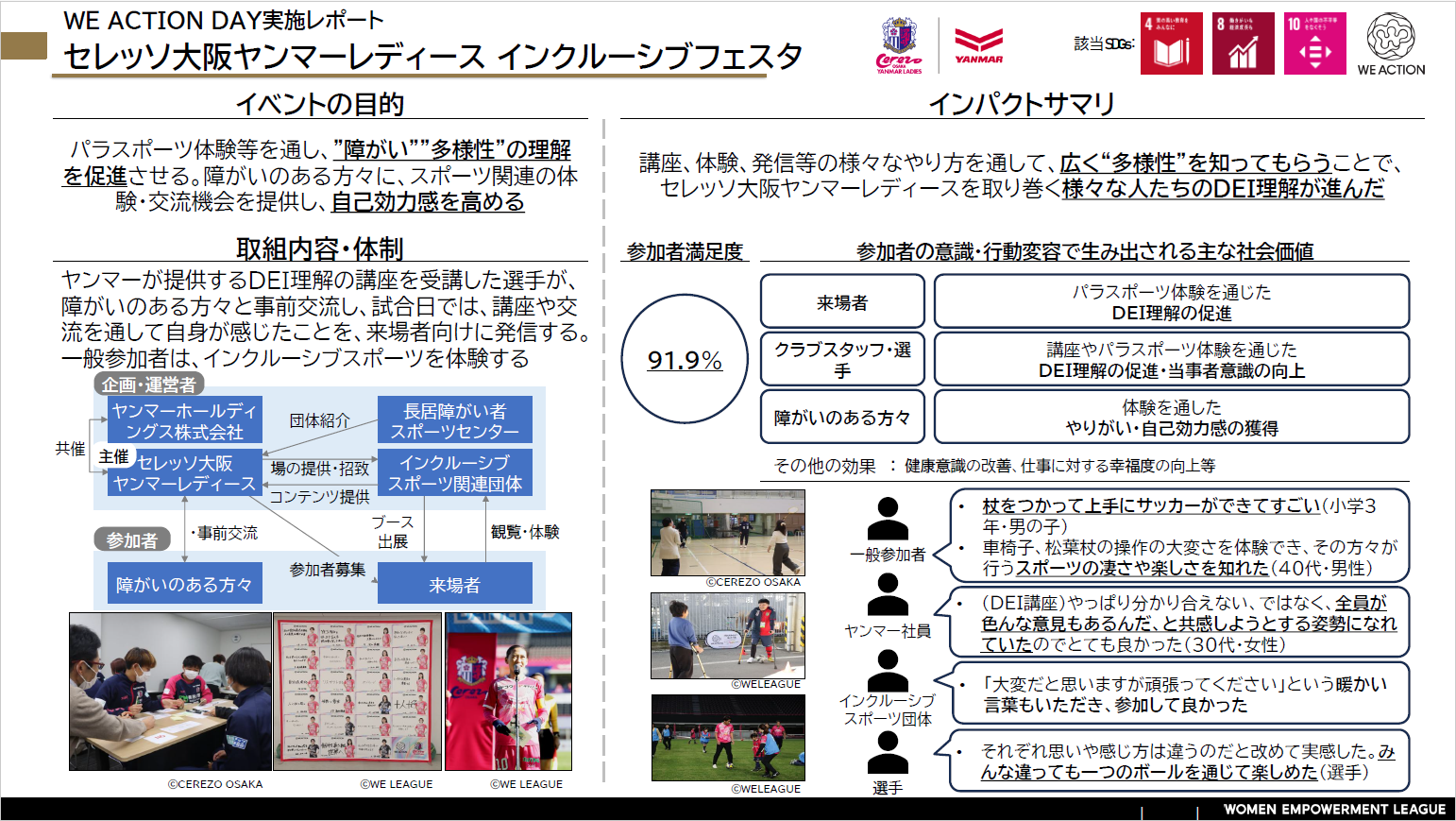 セレッソ大阪ヤンマーレディースは、今後もWE ACTION DAYでの活動を通じて様々な取り組みを行ってまいります。