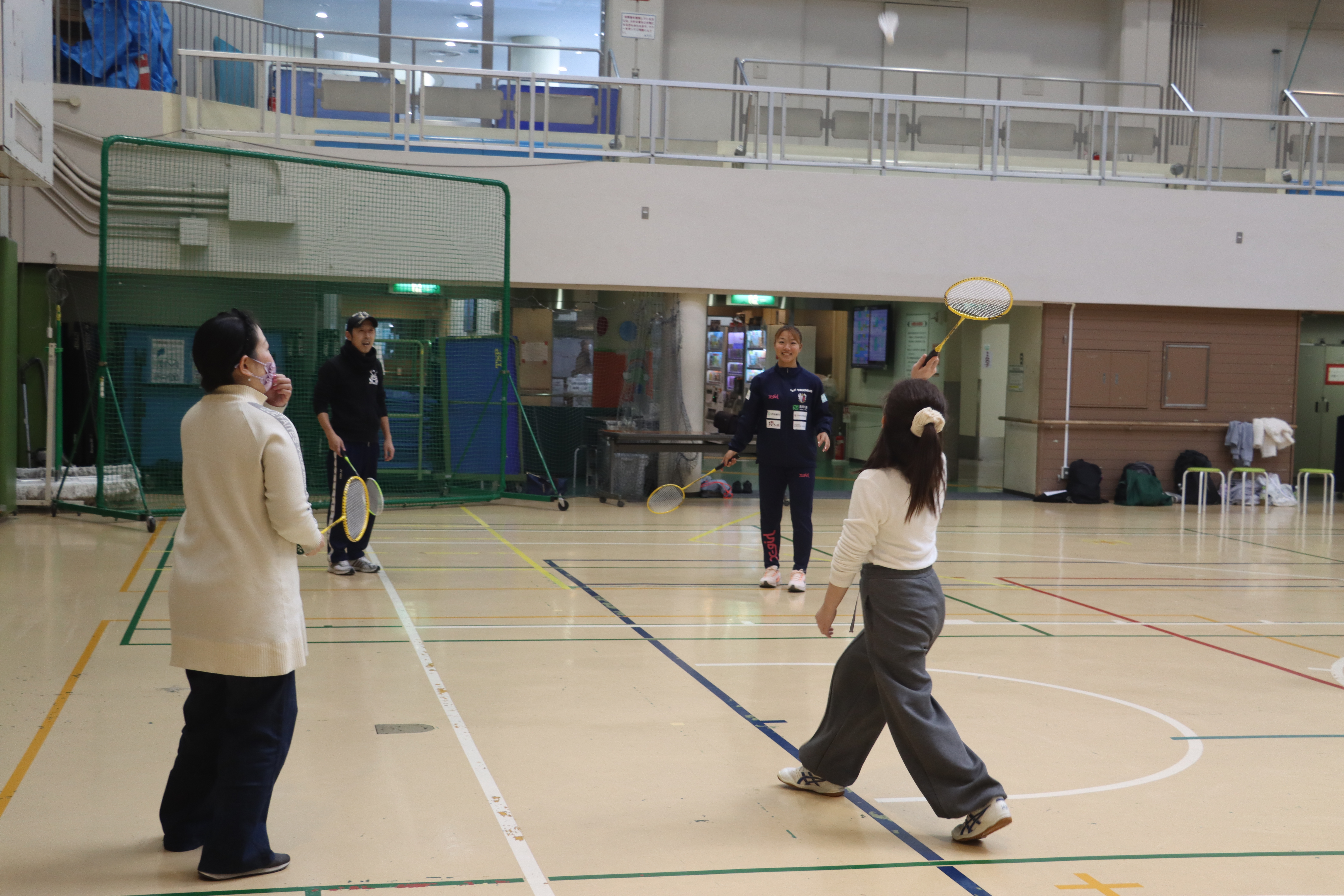高和芹夏選手、田子夏海選手、石田心菜選手が長居障がい者スポーツセンターを訪問し、利用者の皆様とバドミントンを楽しみながら交流しました。