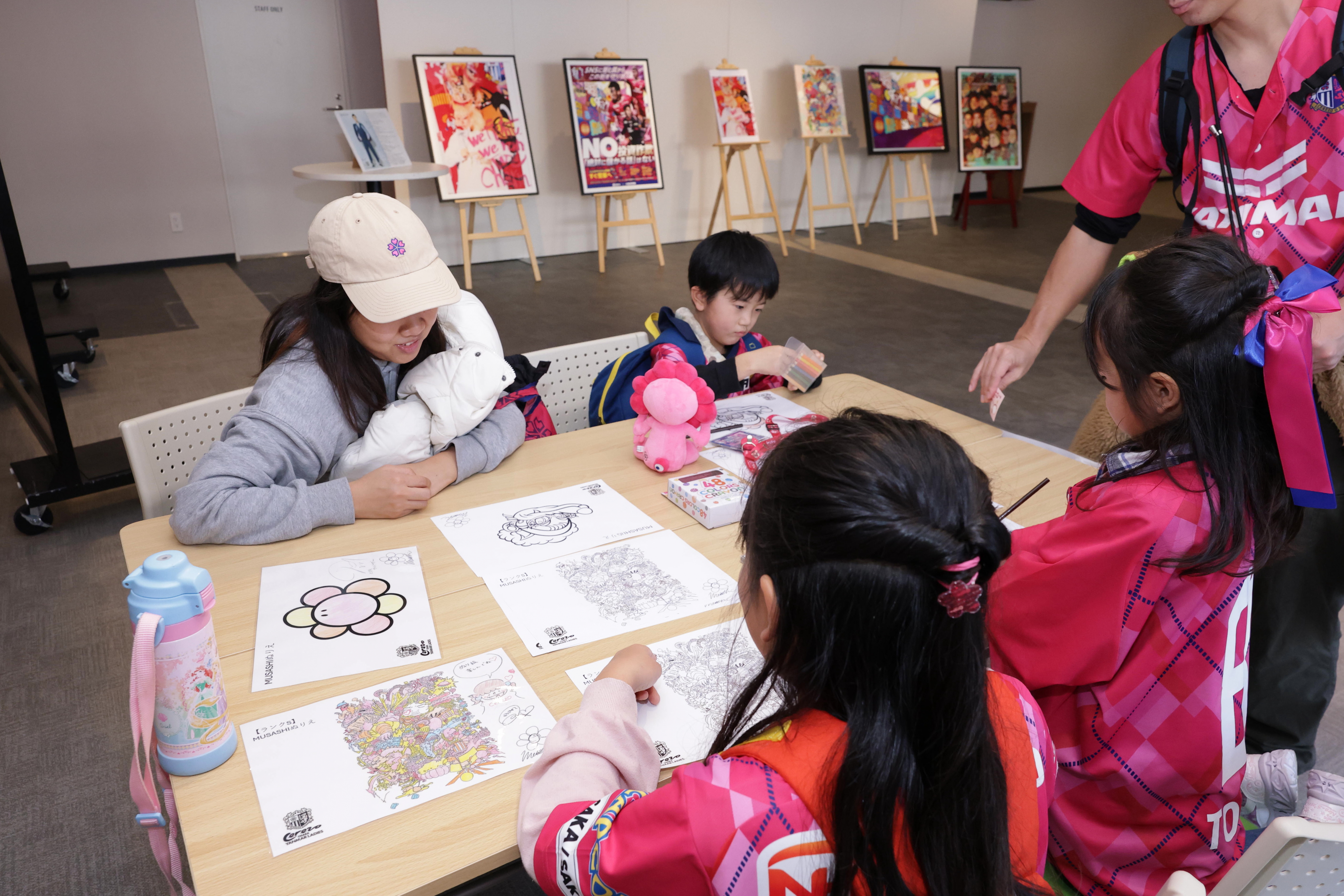 セレッソ大阪をテーマにしたアート制作をはじめ、大阪府警との三者による防犯啓発ポスターの制作、大阪・関西万博での「世界のMUSASHI個展」にセレッソ大阪ブースを出展させていただくなど、これまでさまざまな形で交流を重ねてきたパラアーティストMUSASHIさんの絵を用い、障がいの有無・国籍に関わらず誰でも実施できる塗り絵を実施するほか、過去のアート作品を展示いただきました。