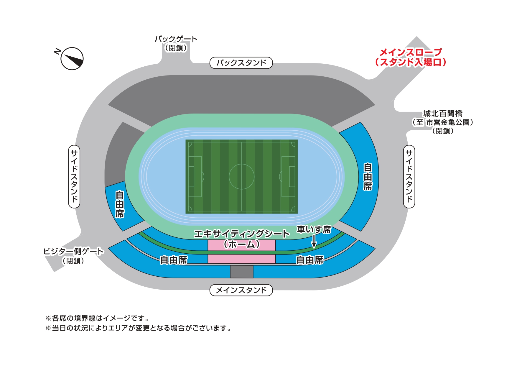 ※スタジアム内の移動は購入いただいた席種エリアのみとなります、いずれも再入場口は設置いたします