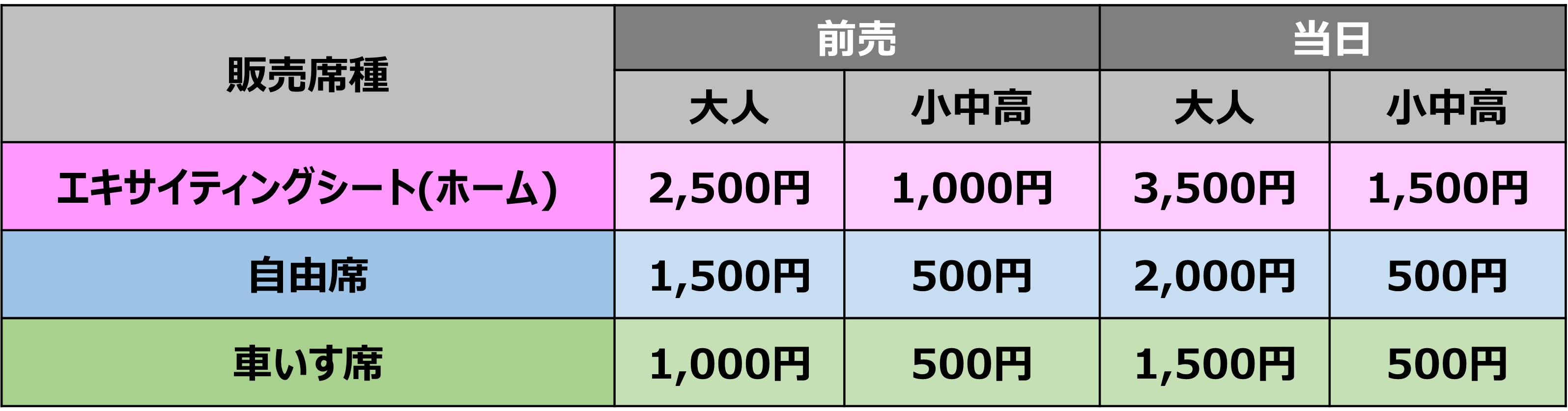 ※ご購入後の席種変更、払い戻しはお受けいたしかねます