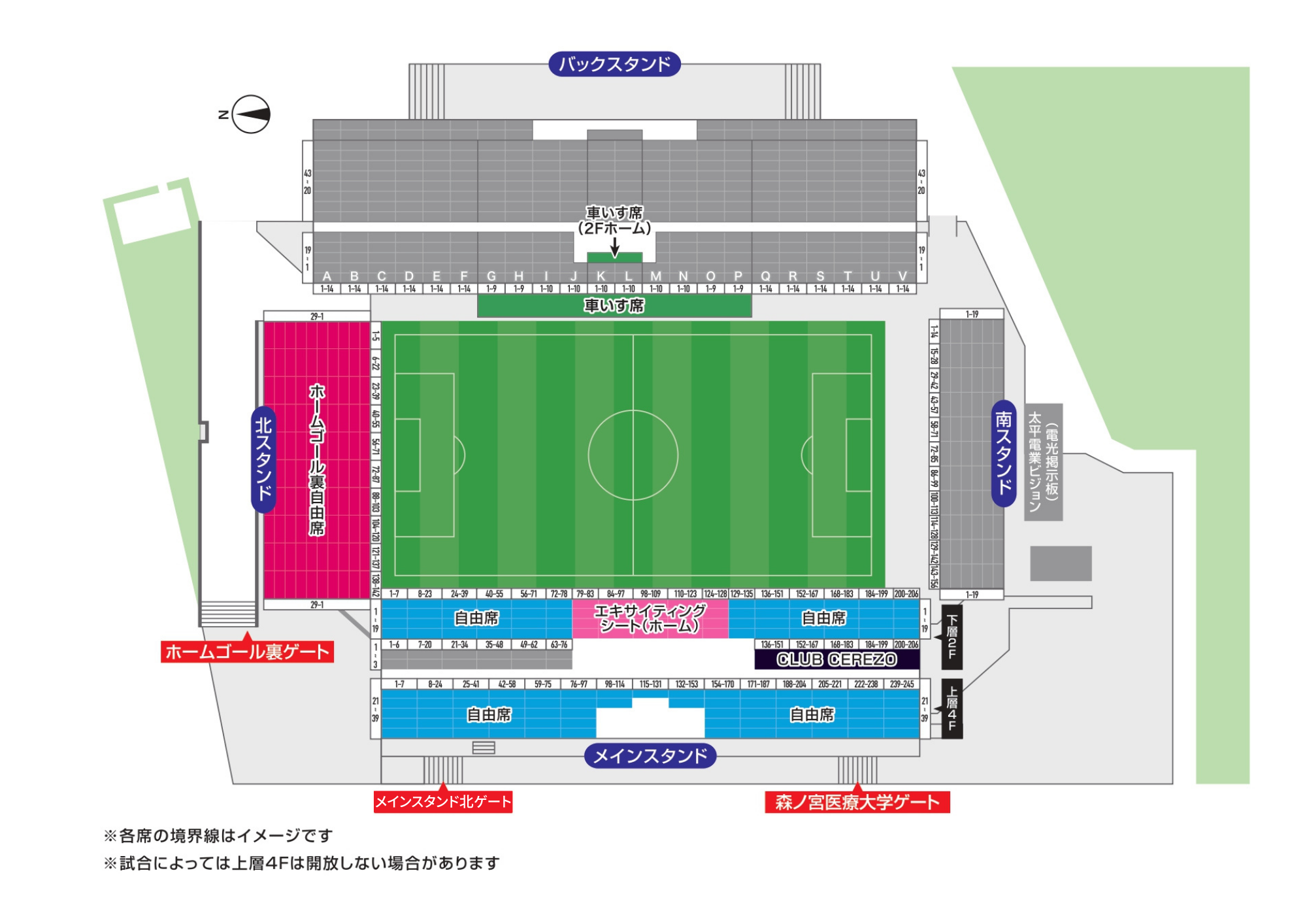 ※スタジアム内の移動は購入いただいた席種エリアのみとなります、いずれも再入場口は設置いたします