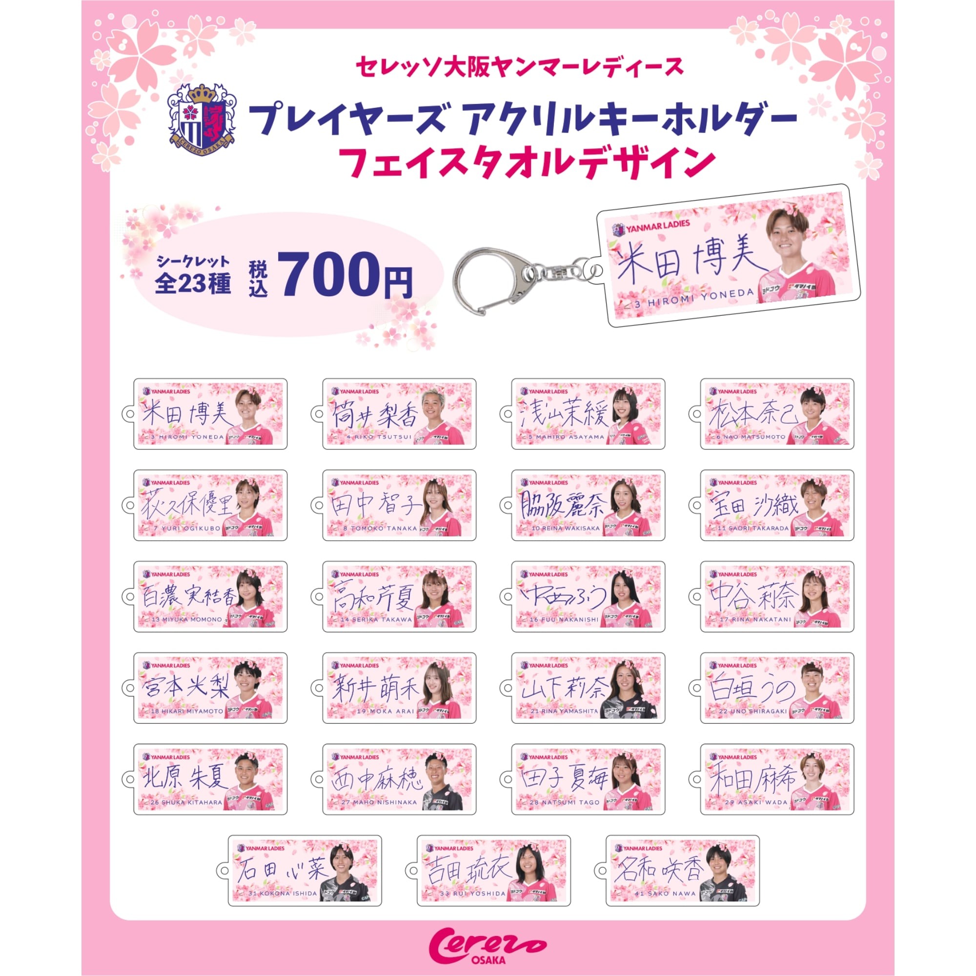 【シークレット】2025/26 セレッソ大阪ヤンマーレディース プレイヤーズ アクリルキーホルダー フェイスタオルデザイン (全23種)