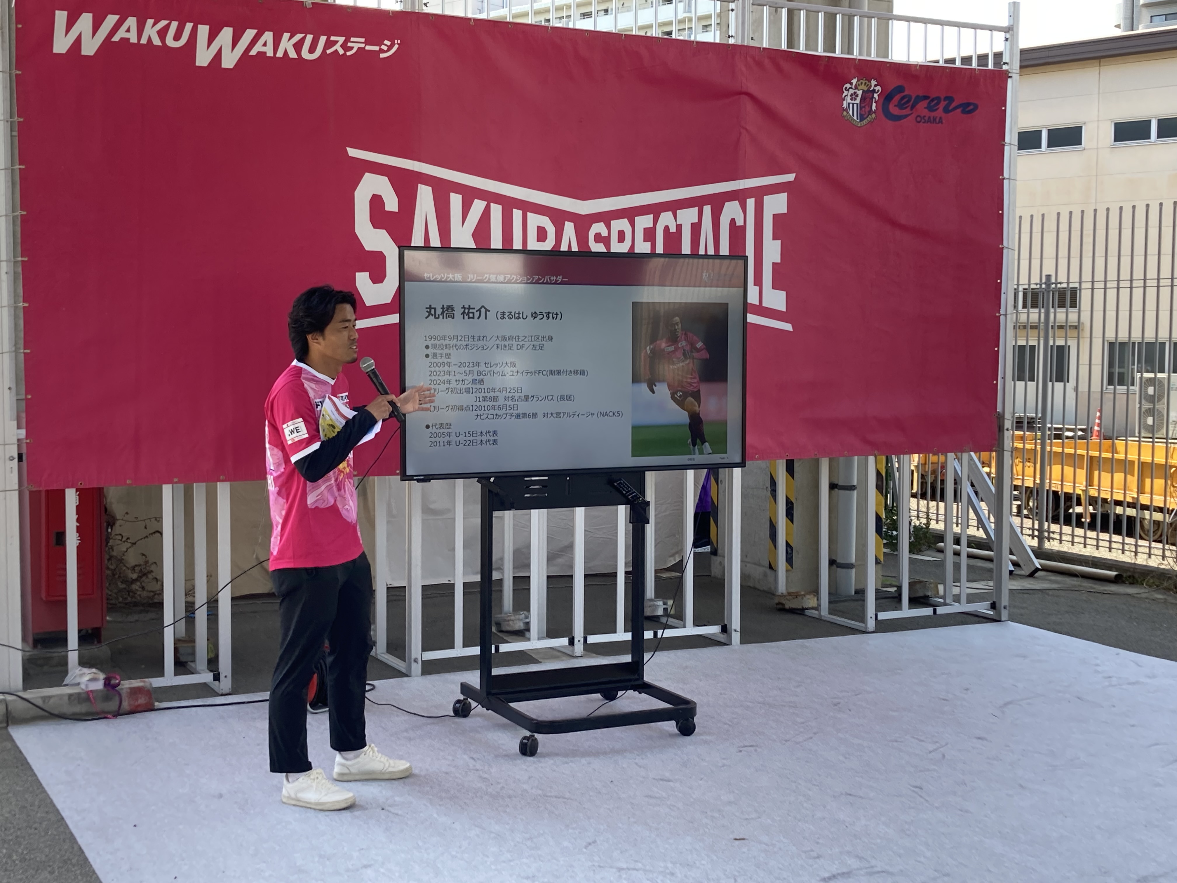 4月12日に実施した2025/26 WEリーグ クラシエカップ 準決勝第1戦の試合前、場外のステージで丸橋アンバサダーによる「環境教育授業」を実施しました。