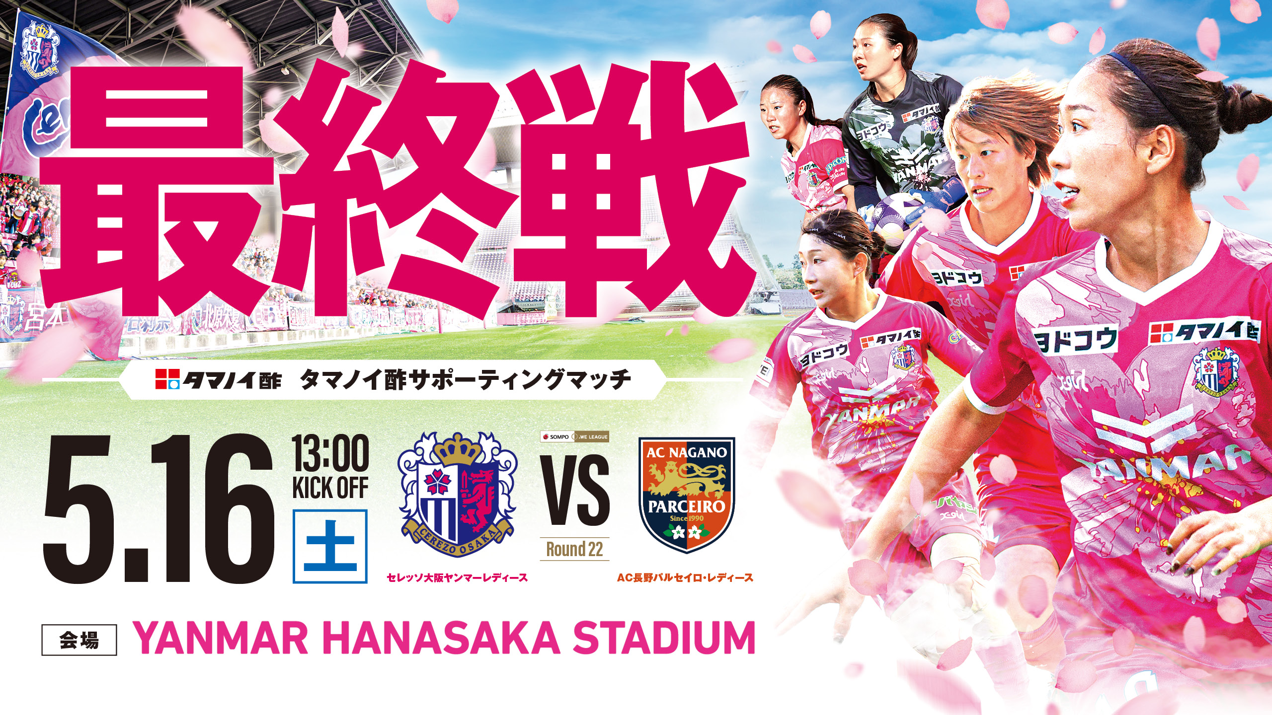 本試合はセレッソ大阪ヤンマーレディースゴールドパートナーのタマノイ酢株式会社によるタマノイ酢サポーティングマッチ”として実施いたします。
