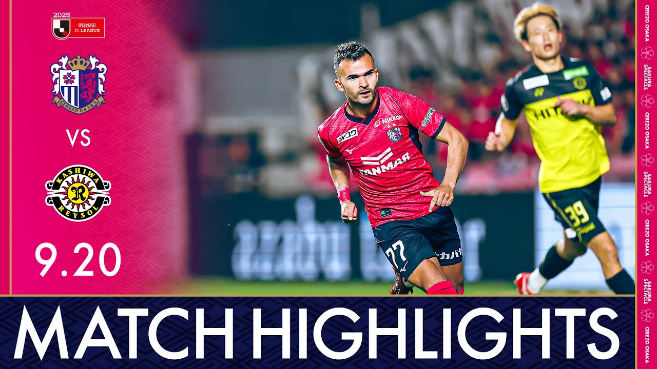 試合前にはセレッソ大阪レジェンズvs明治安田スーパーレジェンズの「明治安田スーパーレジェンズマッチ2025」が行われ、柿谷曜一朗さんと森島康仁さんのゴールでセレッソ大阪レジェンズが2-0で勝利。多くのサポーターの前で両チームの選手たちが奮闘。熱気にあふれた試合となった。豪華な試合前イベントを経て始まった今節、最初の決定機はセレッソ。2分、香川真司を起点にルーカス フェルナンデス、ハットンとワンタッチでつないで中央を破ると、最後は柴山昌也が左足を振り抜く。良い連係で崩したが、わずかに枠を外れた。9分には柏の山田雄士に中央からシュートを打たれたが、前節に続いて井上黎生人がブロック。この時間帯は柏に押し込まれたが、15分、大畑歩夢のパスから左サイドの背後を取ったチアゴ アンドラーデが突破してクロス。逆サイドからルーカスが飛び込んできてシュート。GK小島の正面に飛んだが、セレッソも両ウイングがゴールに迫る。前からのプレスも狙い、守備での強度も高く、悪くない入りを見せたセレッソだったが、25分、ビルドアップのミスを突かれて失点。GK福井光輝からボールを受けた進藤が中盤へ送ったパスをカットされ、柏にショートカウンターを受けると最後は細谷真大に決められた。それでも、「失点してからの我々のリアクションは良かったと思います」と試合後にアーサー パパス監督も振り返ったように、下を向かずに反撃に出ると、41分、同点に追い付く。福井を起点に井上、チアゴ、大畑とつないで左サイドを崩し、内側のレーンを大畑がドリブルで運び、中央の柴山へパス。受けた柴山が相手を2人引きつけて右サイドへラストパスを送ると、ルーカスが角度のないところから決めた。直後にもセレッソに決定機。相手のパスをカットした香川を起点に中央を破ると、再び柴山のパスから今度はチアゴがシュートを放つも、ここは枠を外れて逆転とはならず。1-1で前半を終えた。