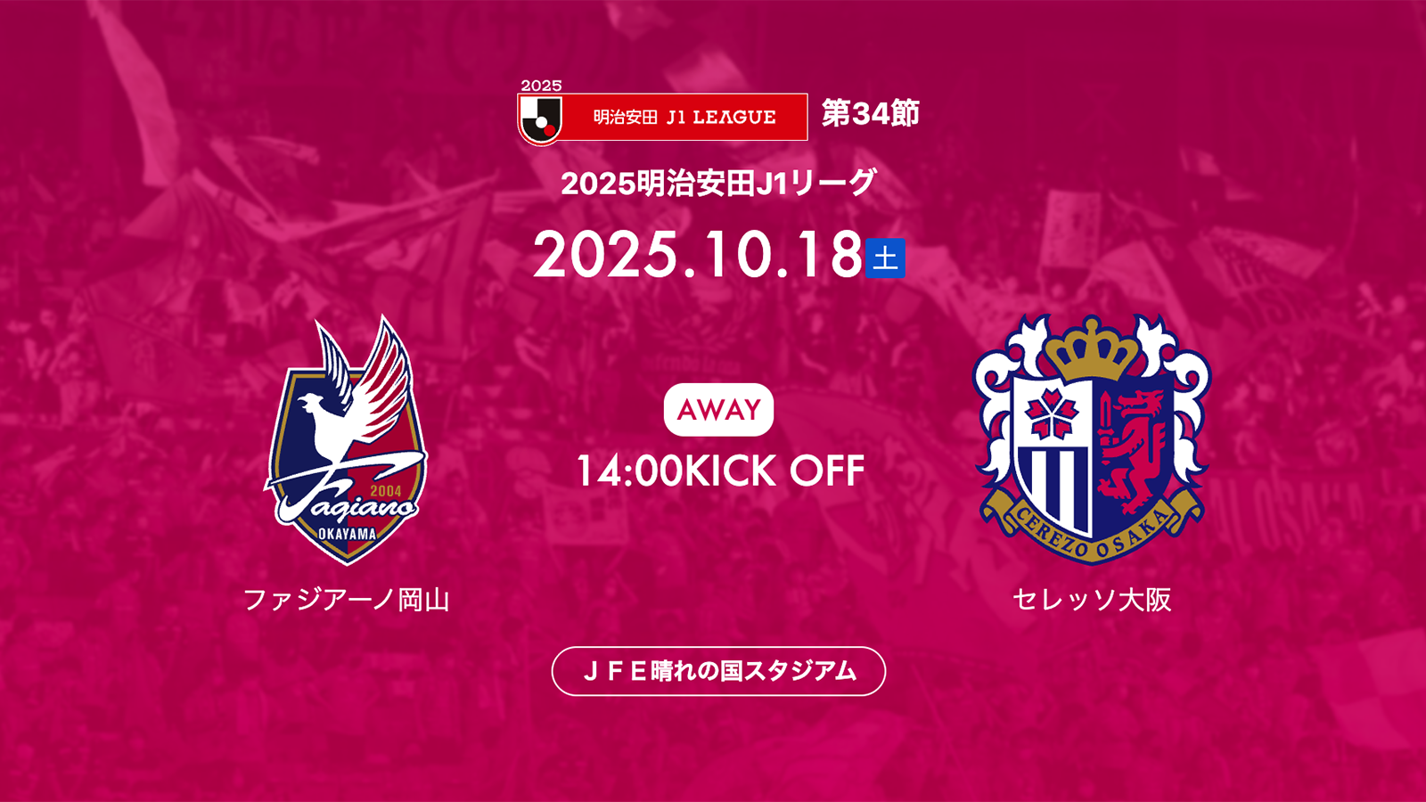 1-2で敗れ、今季初の3連敗を喫した前節の名古屋グランパス戦から約2週間。代表ウィークによる中断を挟み、セレッソ大阪はファジアーノ岡山のホームに乗り込み、明治安田J1リーグ第34節に臨む。岡山との勝点差は2。仮に敗れることがあれば順位で抜かれてしまうだけに、何としても勝利で連敗を止めたい一戦だ。