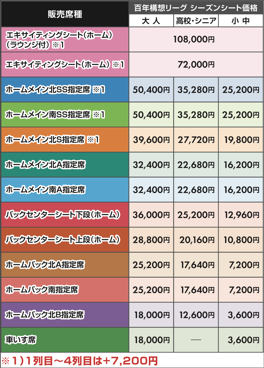 ※ホームサポーター自由席がシーズンシート対象外となったことを受けて、まいセレチケットでの販売を予定しております。詳細は後日お知らせいたします