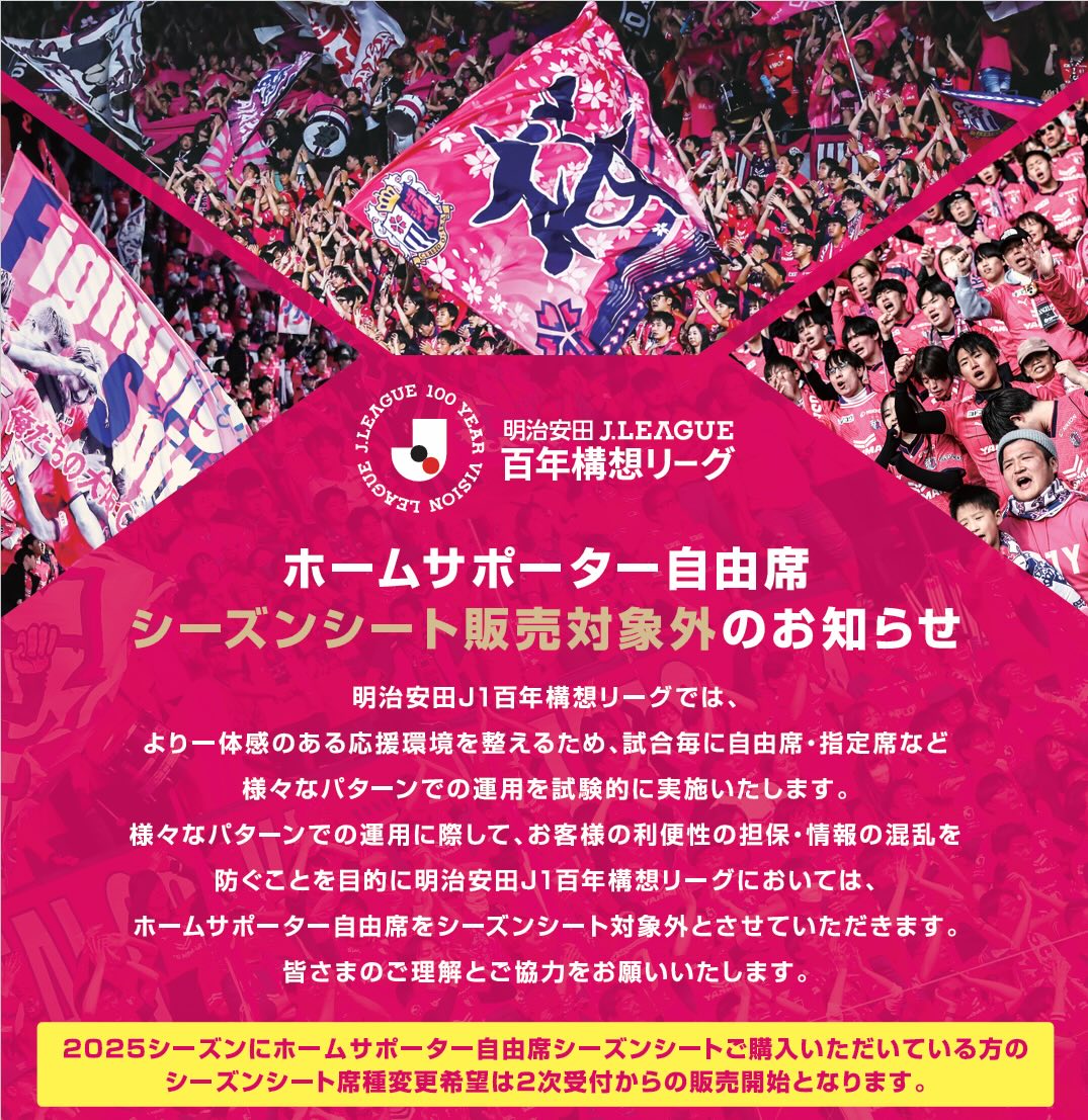 明治安田J1百年構想リーグでのセレッソ大阪ホームゲームのシーズンシートの継続・新規受付についてのご案内です。11/8(金)より、順次受付を開始いたします。