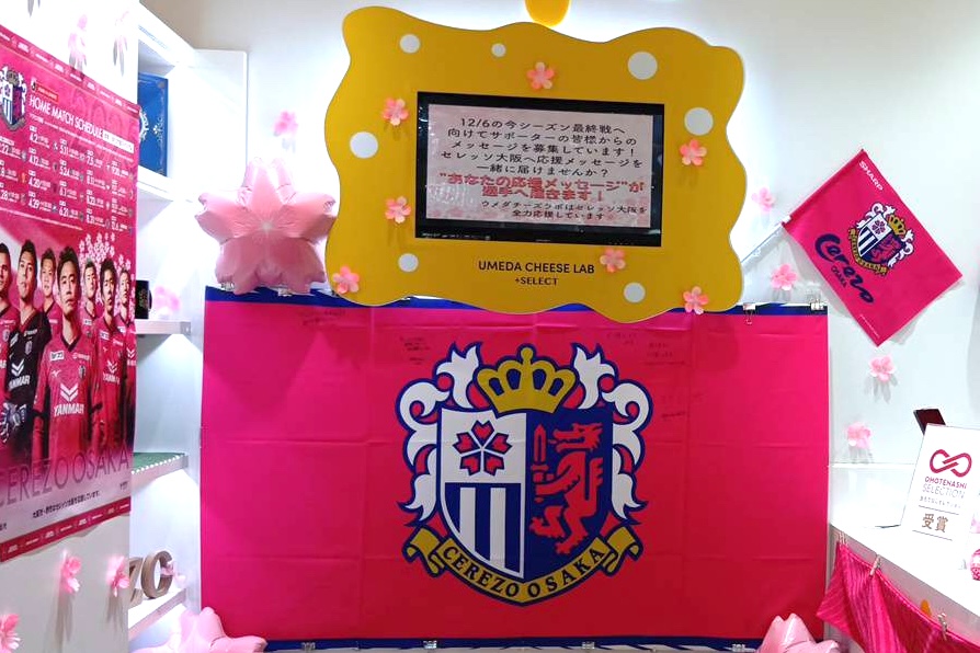 「ウメダチーズラボ南海なんば駅店」に選手への応援メッセージ台設置!