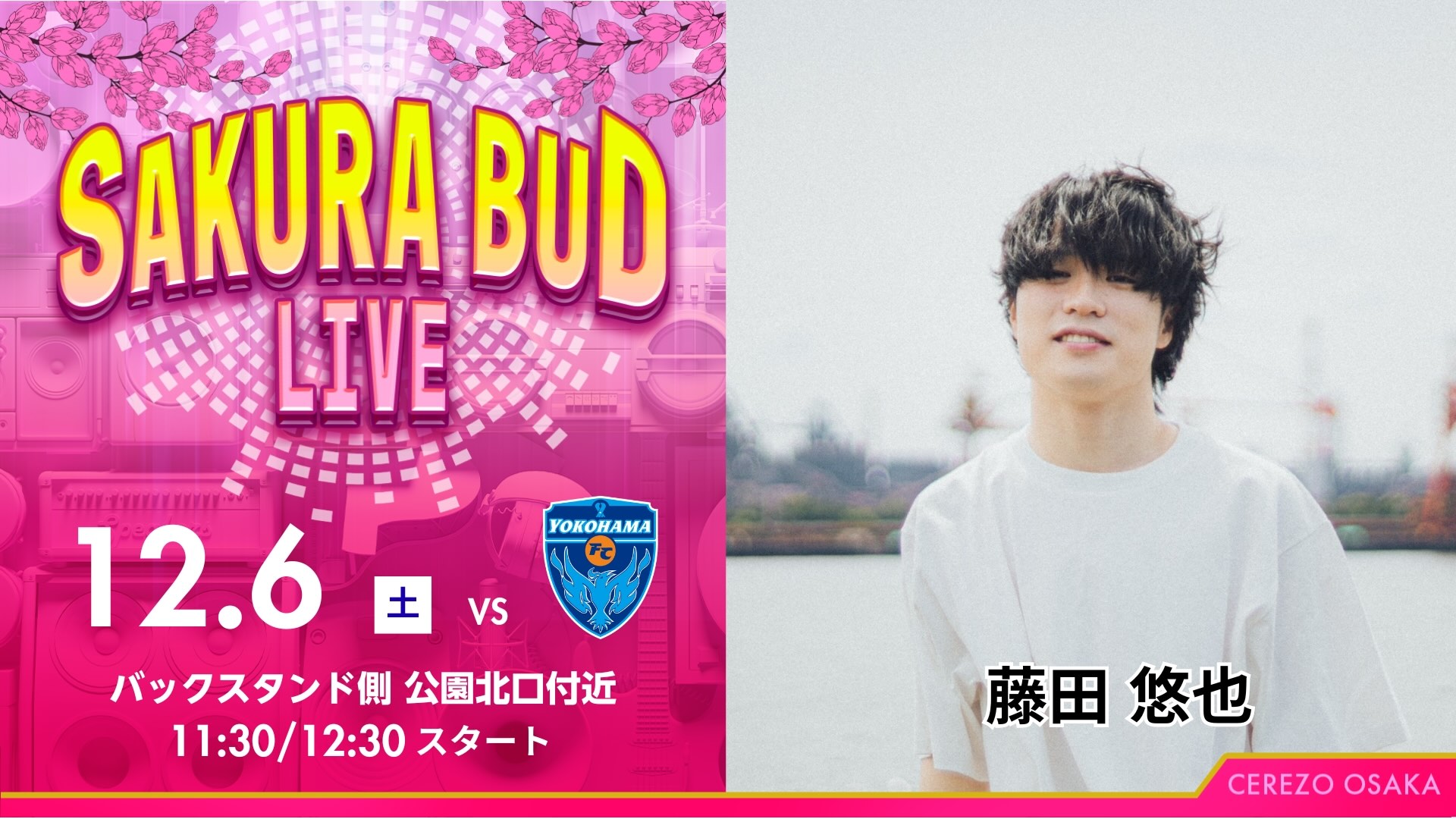 12/6(土)横浜FC戦のSAKURA BUD LIVEは藤田悠也さんが登場!試合前のひとときを、音楽とともにお楽しみください!