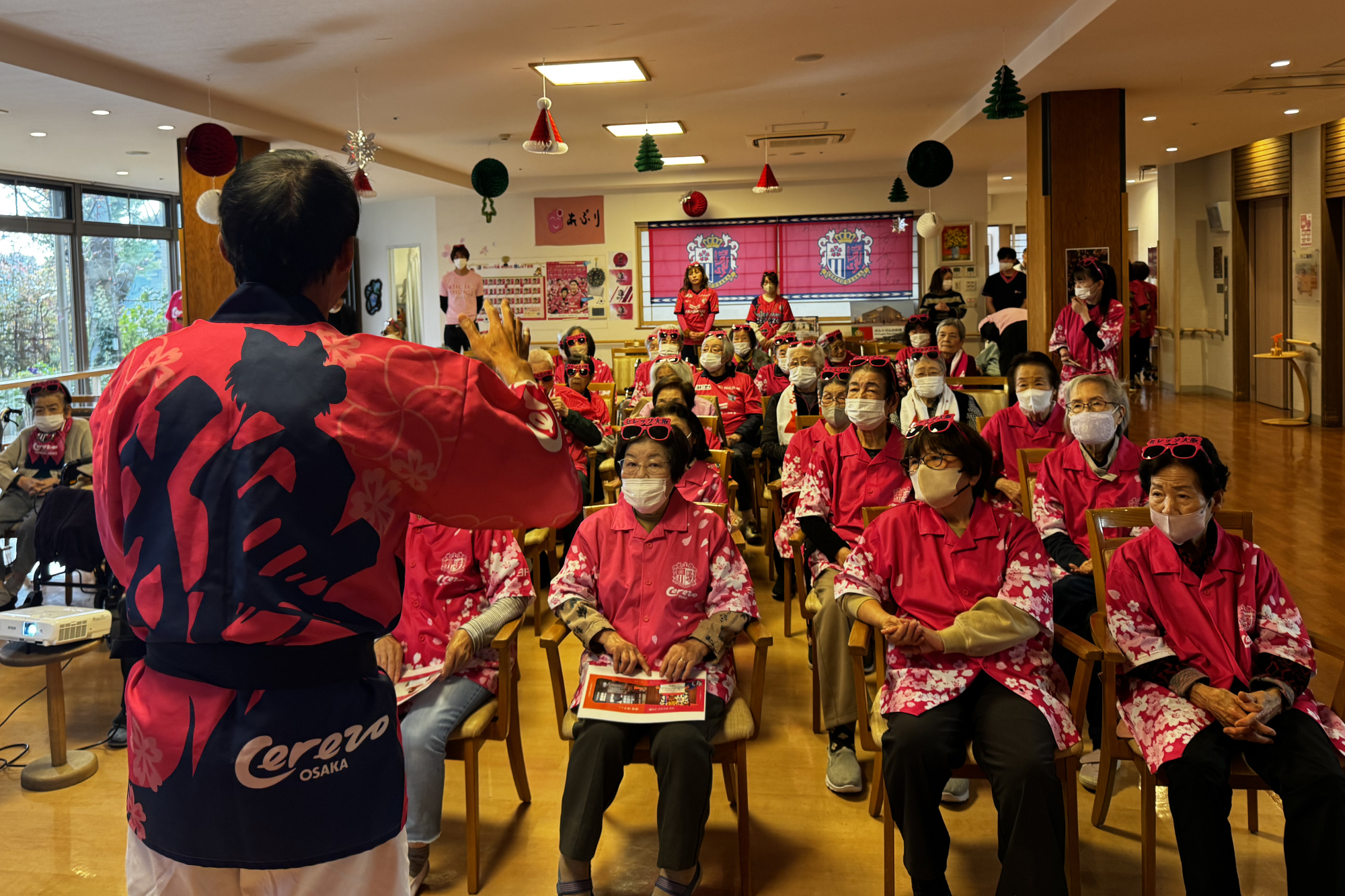 「Be supporters!」は、“支えられる側”と見られがちな高齢者やシニア世代の方々が、“応援する側”としてクラブや地域とつながり、心身ともに前向きに過ごすきっかけを生み出す取り組みです。セレッソ大阪では、ホームタウン活動「シャレン!」の一環としてこの活動に参加し、地域の高齢者施設やサポーターの皆さまと共に「応援の輪」を広げています。