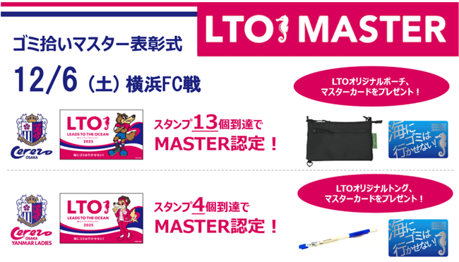 12/6(土)横浜FC戦は、試合前の時間帯での活動実施となります。また、2025シーズンにLTO活動にご参加いただき13個以上スタンプを集めた方を対象に「ゴミ拾いマスター」表彰式も開催いたします。(※10/25川崎戦時雨天中止のため、当試合へ順延となりました)
