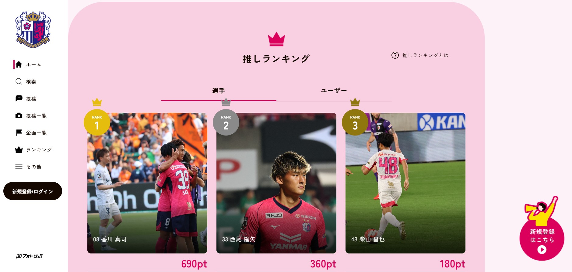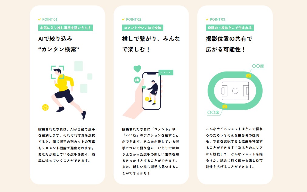 「推しへの思いやクラブへの応援を写真に乗せて届けたい!」、「フォトサポーターが撮った試合の写真を楽しみたい!」そんな思いにお応えするべく立ち上がった「写真で応援する」をコンセプトとする画像共有サイトです。皆さまによりフォトサポに投稿された写真は、サポーター同士で見て楽しんでいただけます。