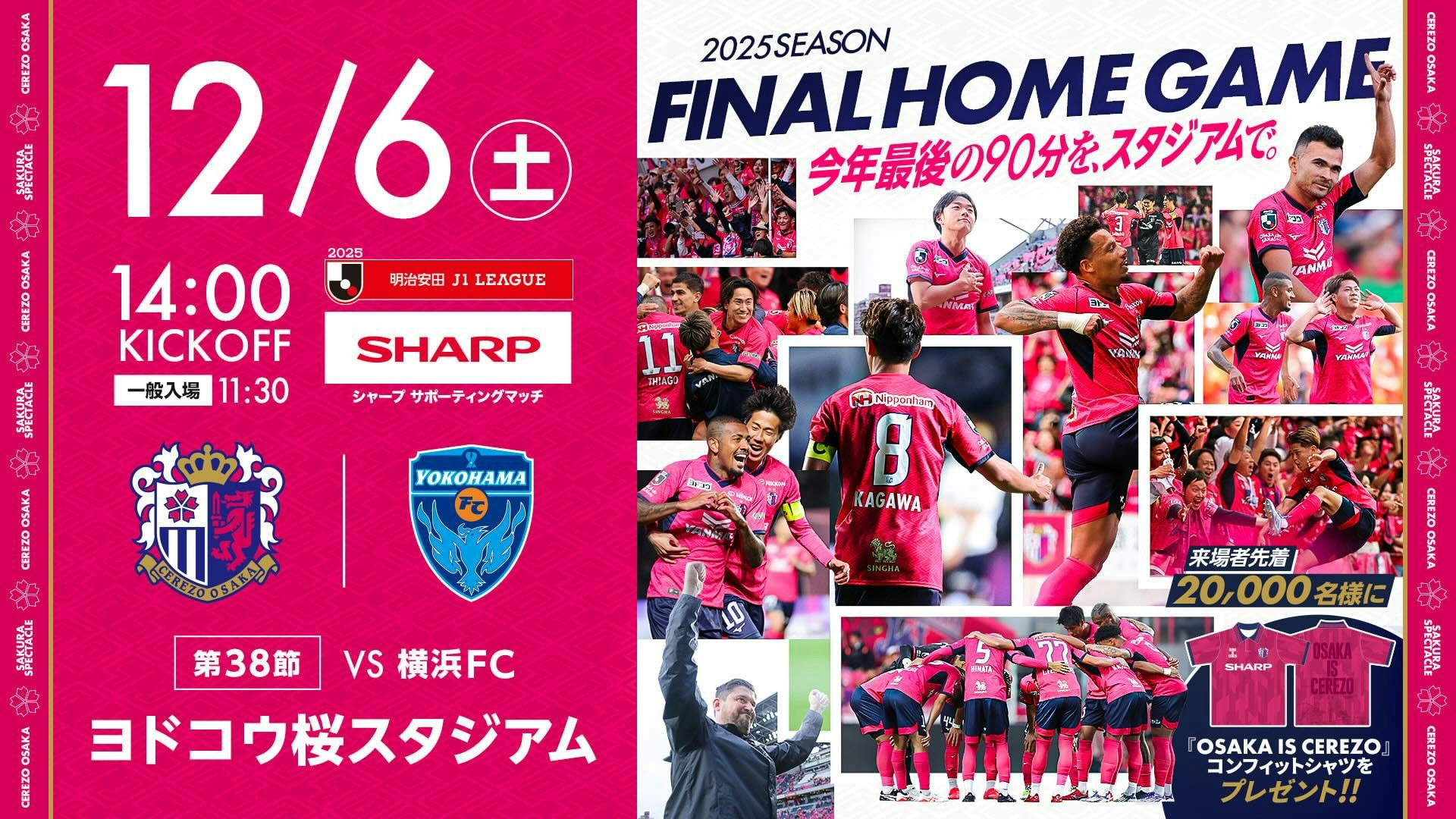 連勝が3で止まり、1-3で敗れた前節の横浜F・マリノス戦から中5日。セレッソ大阪は横浜FCをホームに迎え、今シーズンの最終節、明治安田J1リーグ第38節に挑む。