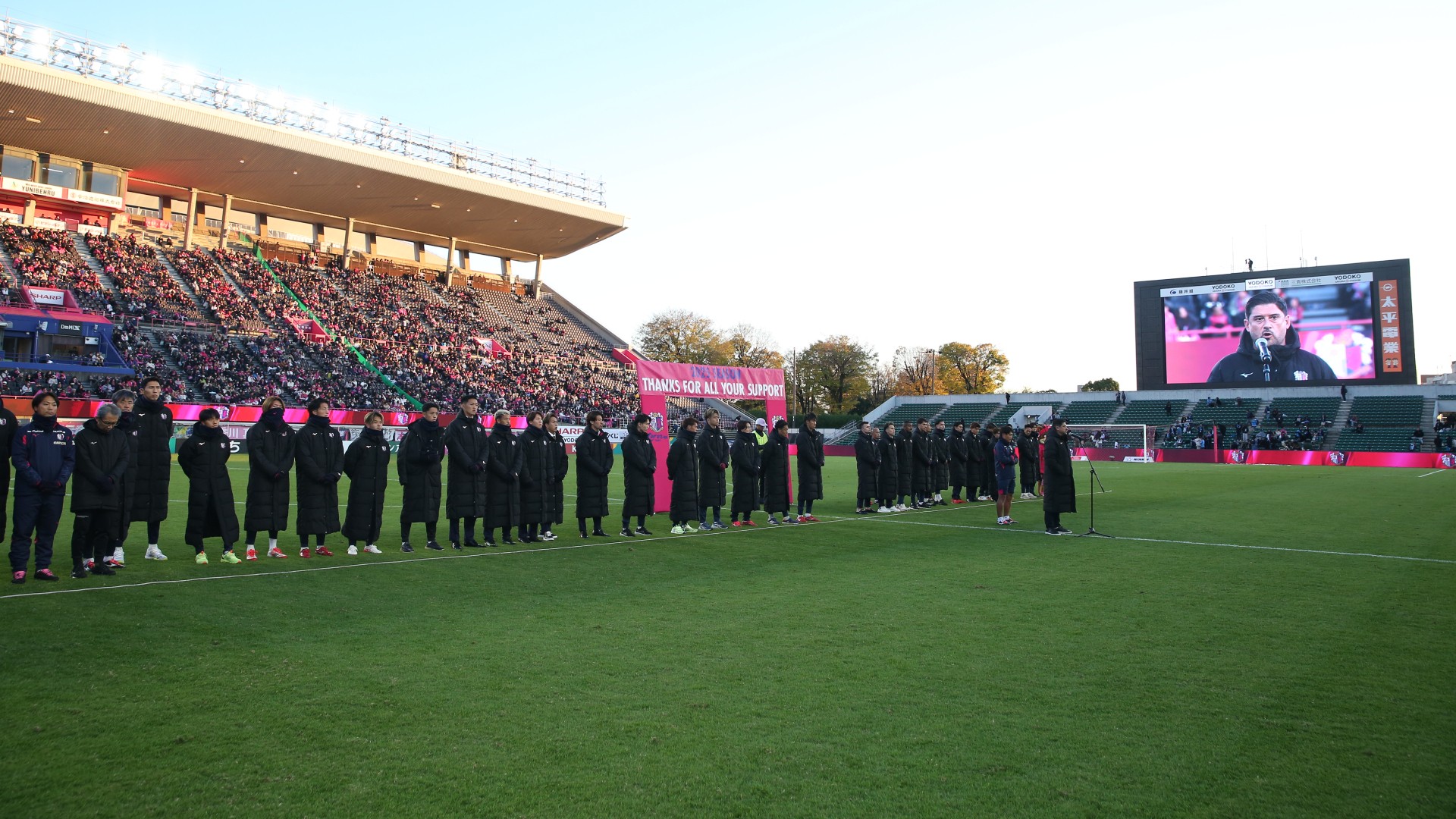 最終的な戦績は14勝10分14敗と五分。順位も10位と中位でフィニッシュした。試合後は、キャプテンの田中とパパス監督がサポーターの前で挨拶。「このクラブを本当に変えたい。トロフィーを掲げるという気持ちで全て戦いたい。まだまだやらないといけないことはありますが、チームは絶対に強くなる、チームはもっと勝つ。人生の中で一番の瞬間を、優勝という形で迎えたい」とパパス監督が熱いスピーチ。来年の明治安田J1百年構想リーグおよび2026/27シーズン明治安田J1リーグへ向け、躍進を誓った。.jpg)