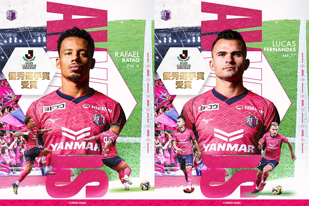 2025Jリーグ優秀選手賞(36名)にセレッソ大阪からラファエル ハットン選手、ルーカス フェルナンデス選手が選出されました。