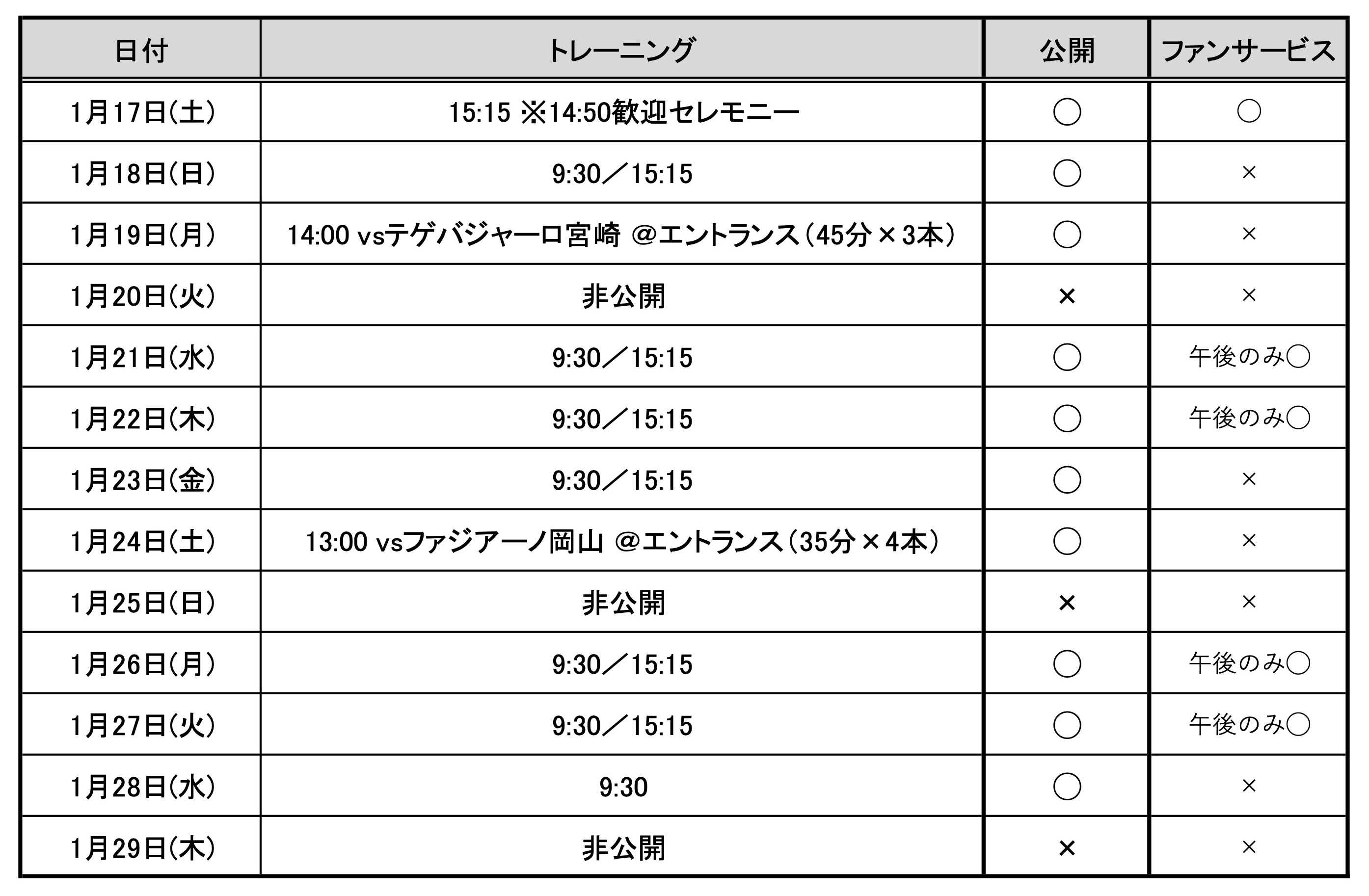 練習公開日/ファンサービス実施日
