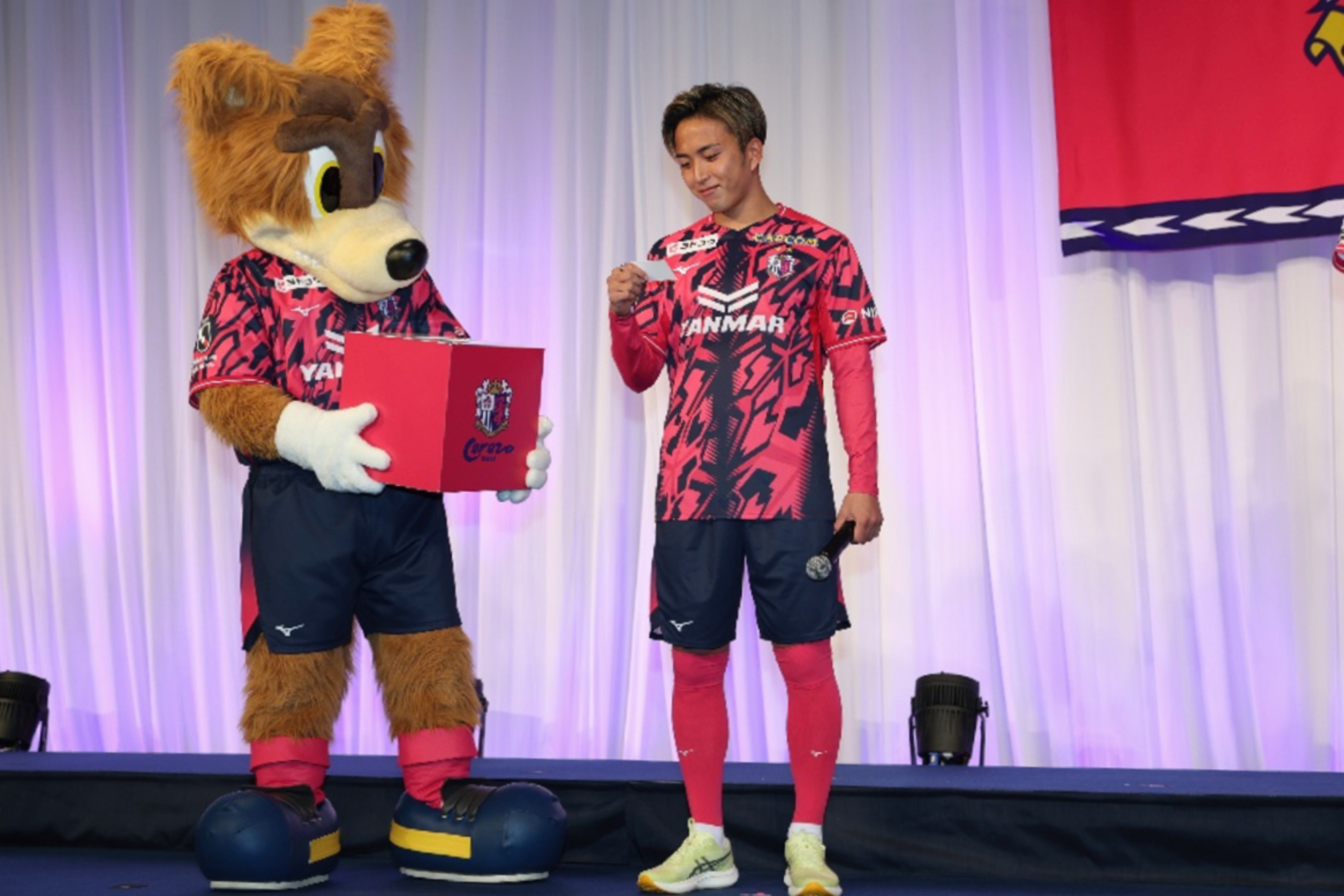 途中のプログラムでは、新ユニフォームを着用した大畑 歩夢選手、井上 黎生人選手、中村 航輔選手による抽選会を実施。また、櫻川 ソロモン選手、田中 隼人選手、鷹啄 トラビス選手とアンバサダー3名によるトークショーも行われ、会場は大いに盛り上がりました。さらに、セレッソ大阪ヤンマーレディースからは、脇阪 麗奈選手、宝田 沙織選手、中谷 莉奈選手が登壇し、ご挨拶とともにWEリーグ後半戦へ向けた意気込みを語りました。最後に、代表取締役会長 森島 寛晃が登壇。百年構想リーグという新たなステージの幕開けにあたり、来場者の皆さまへの感謝を述べるとともに、アーサー・パパス監督のもと、クラブ一丸となって百年構想リーグを戦い抜き、その先の新たなシーズンへとつなげていきたいという決意を表明しました。また、スタジアムでの直接の声援が選手たちの大きな力になることに触れ、セレッソファミリー全員で新しい景色を見るため、ともに力を合わせていきたいと呼びかけ、今シーズンへの変わらぬご支援をお願いし、中締めの挨拶としました。2026セレッソ大阪 百年構想リーグ開幕レセプションにご参加いただいた皆さま、誠にありがとうございました。今シーズンもセレッソ大阪へのご支援・ご声援を、何卒よろしくお願い申し上げます。