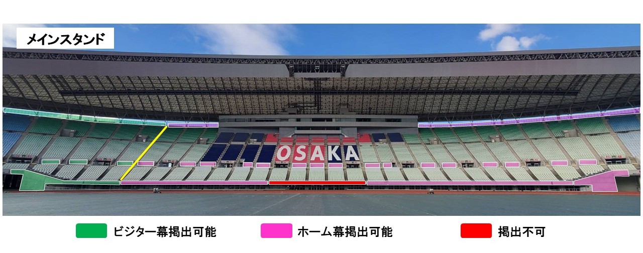 横断幕を所持・掲出される方ご自身がお持ちのチケットでご入場可能なスタンド内にて、下記の横断幕掲出可能場所に従ってご掲出ください。(チケットをお持ちでないスタンドへの横断幕掲出はできません)