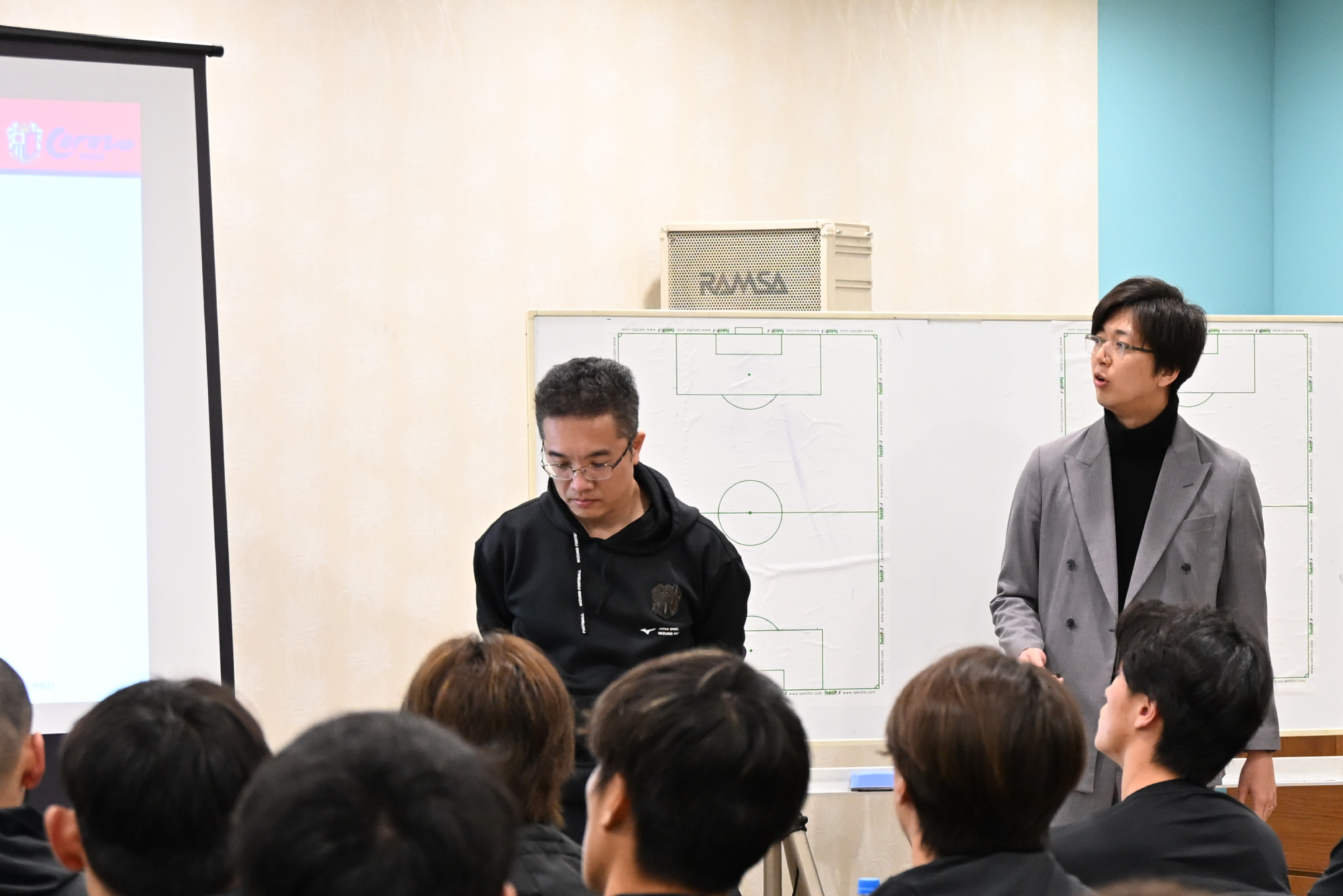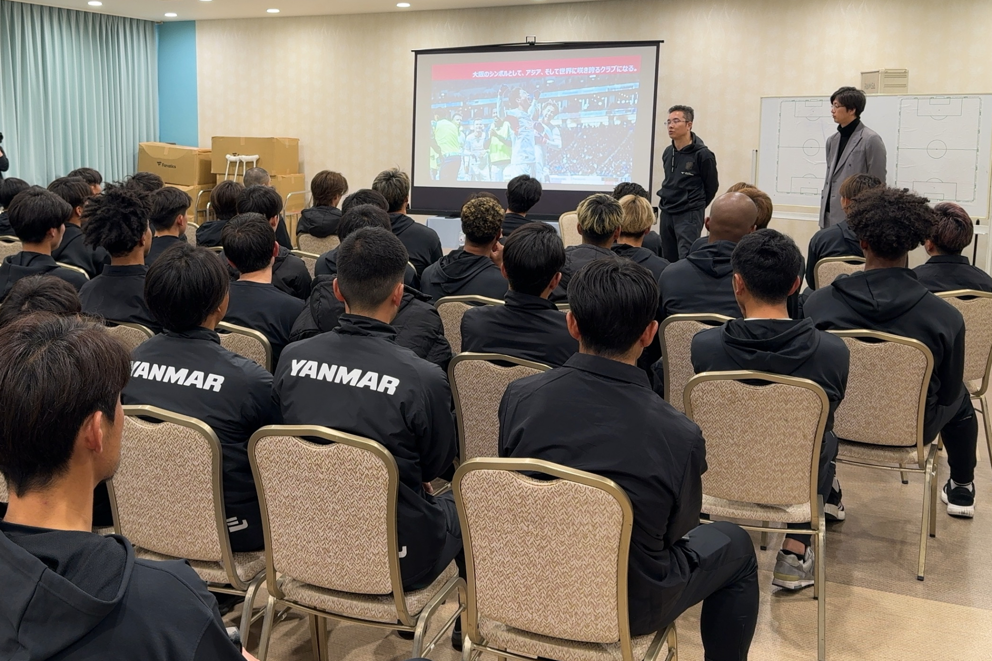 1/25(日)、トップチーム選手を対象に「クラブ理念研修」および「サステナビリティ(SDGs)研修」を実施しました。本研修は、クラブの価値観や社会的役割について改めて理解を深め、日々の活動やプレーにどう落とし込んでいくかを考える機会として実施されたものです。クラブ理念研修では、事業部スタッフが講師を務め、SAKURA SPECTACLEをキーワードに、セレッソ大阪が大切にしている考え方や、クラブとして目指すべき姿について説明しました。単なるスローガンの共有にとどまらず、クラブの事業ミッションと結び付けながら、選手がピッチ内外でどのような存在であるべきか、また地域やファン・サポーターに対して果たす役割についても具体的に言及しました。続いて行われたサステナビリティ研修では、現在の地球環境を取り巻く状況を踏まえ、「サッカーができる環境は決して当たり前ではない」という視点から、スポーツと社会課題の関係性について説明しました。あわせて、プレミアリーグが参画するサステナビリティ施策「SPL(Sports Positive League)」の事例を紹介し、世界のフットボール界における環境配慮や社会貢献の取り組みを共有。セレッソ大阪として今後どのようなアクションを起こしていくべきかを考える時間となりました。研修中、選手たちは講師の話に真剣に耳を傾け、積極的に理解を深める姿が見られました。クラブの一員としての自覚を新たにし、競技活動だけでなく、社会とつながる存在であることを意識する有意義な機会となりました。セレッソ大阪は今後もクラブ一体となって持続可能な取り組みを継続してまいります。