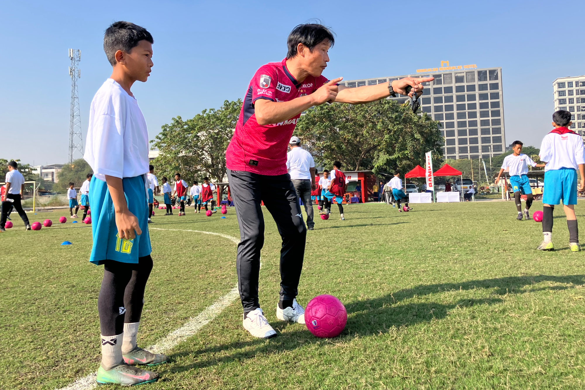 ミャンマー地震復興支援活動の一環で、現地でサッカークリニックを実施しました!