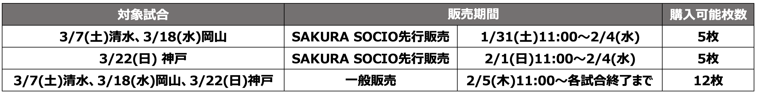 3月開催のホームゲームチケット販売について
