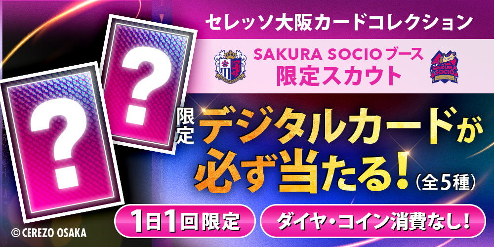※公式デジタルトレカサービス「セレッソ大阪カードコレクション(セレコレ)」のダウンロードが必要となります、