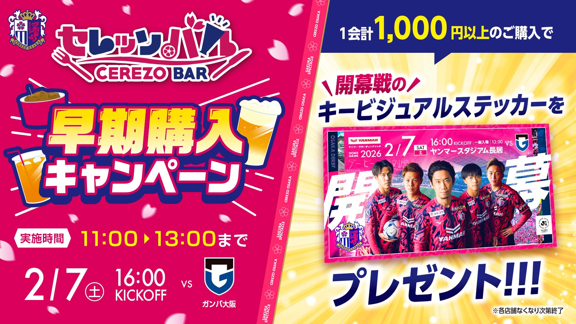 開幕戦のセレッソバルの出店店舗が決定!早期購入キャンペーンも開催!