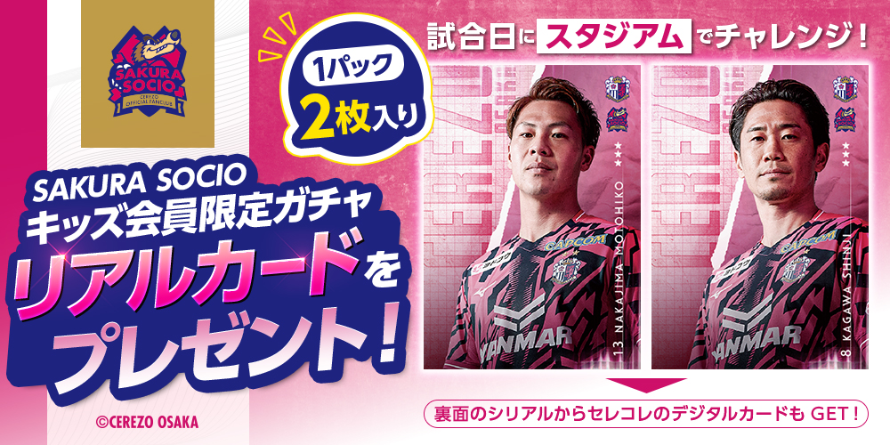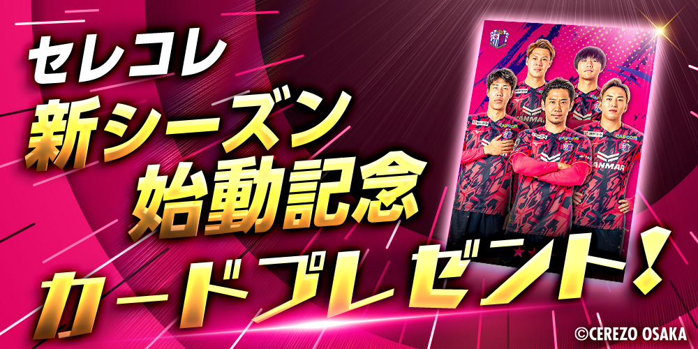 新シーズンのリリースを記念し、シリアルコードを入力いただいた方全員に「セレッソ大阪カードコレクション 新シーズンリリース記念カード」をプレゼントいたします。