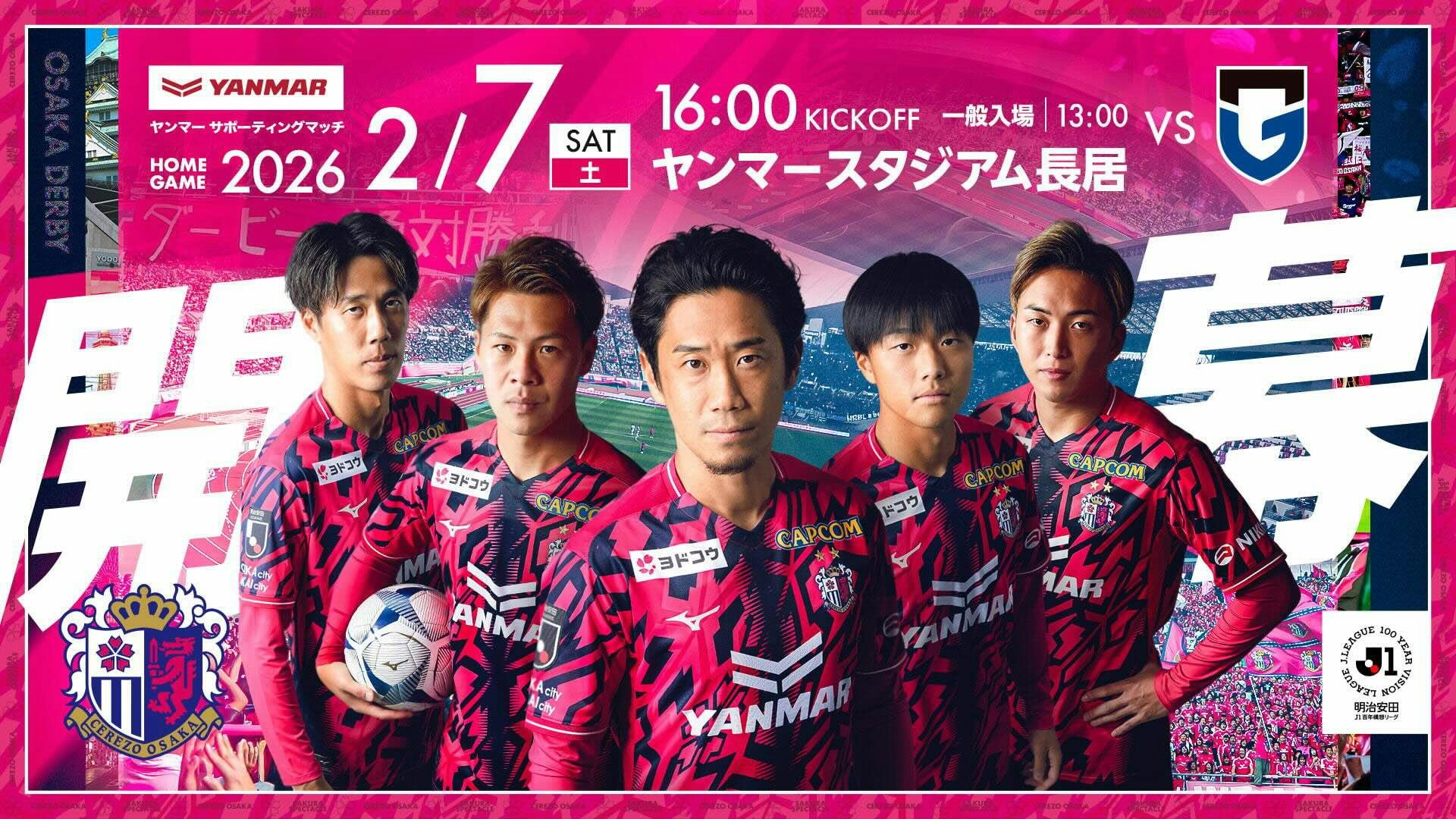 シーズン移行を今年の夏に控えた2026年。その前半は、特別大会として明治安田Jリーグ百年構想リーグが開催される。J1は地域リーグラウンドとして東西の2グループに分け、10チームによるホーム&アウェイで総当たりのリーグ戦を実施。その上でプレーオフラウンドとして東西の同順位のチーム同士が対戦し、最終的な順位を決定する。開幕戦は昨シーズンと同様、ガンバ大阪との大阪ダービー。今年も絶対に負けられない一戦から新たな戦いがスタートする。