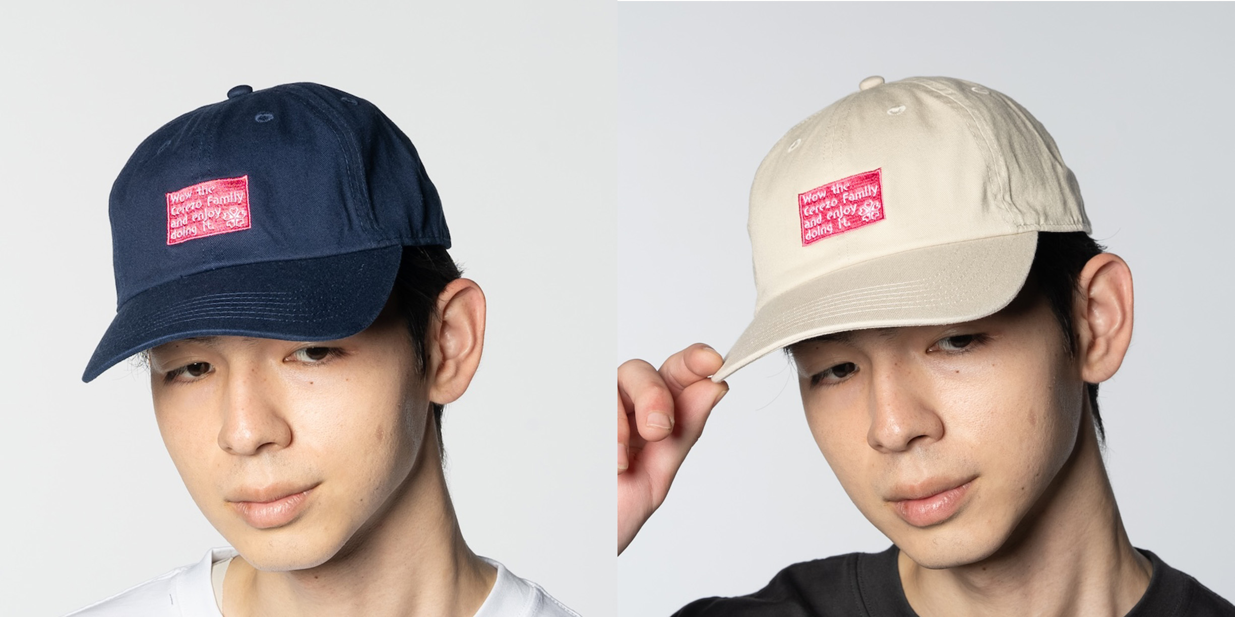 デザインコンセプト:“楽しめ。”をセレッソピンクで。メッセージをフロント中央に配し、刺繍で力強く表現。被るだけで気持ちが上がる、様々なシーンで使えるデザインのキャップ。