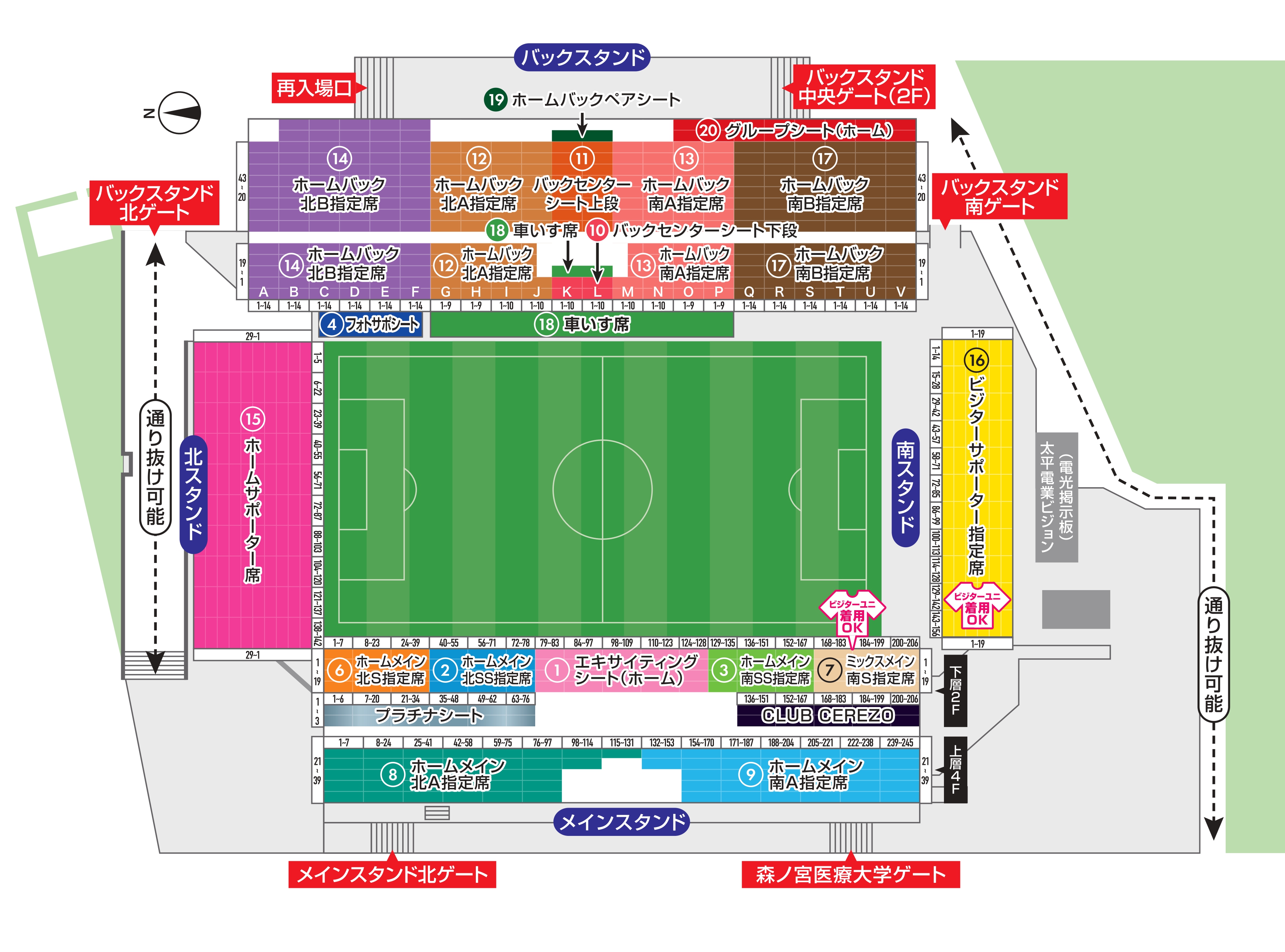 ※「メインスタンド北ゲート」長居球技場における正式名称となります