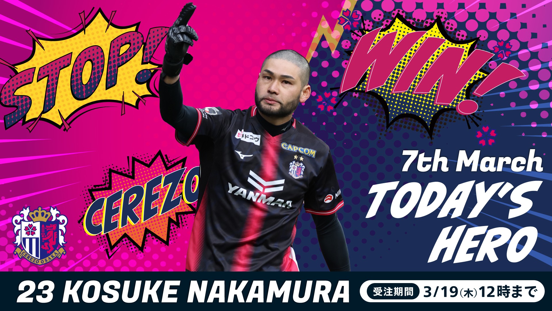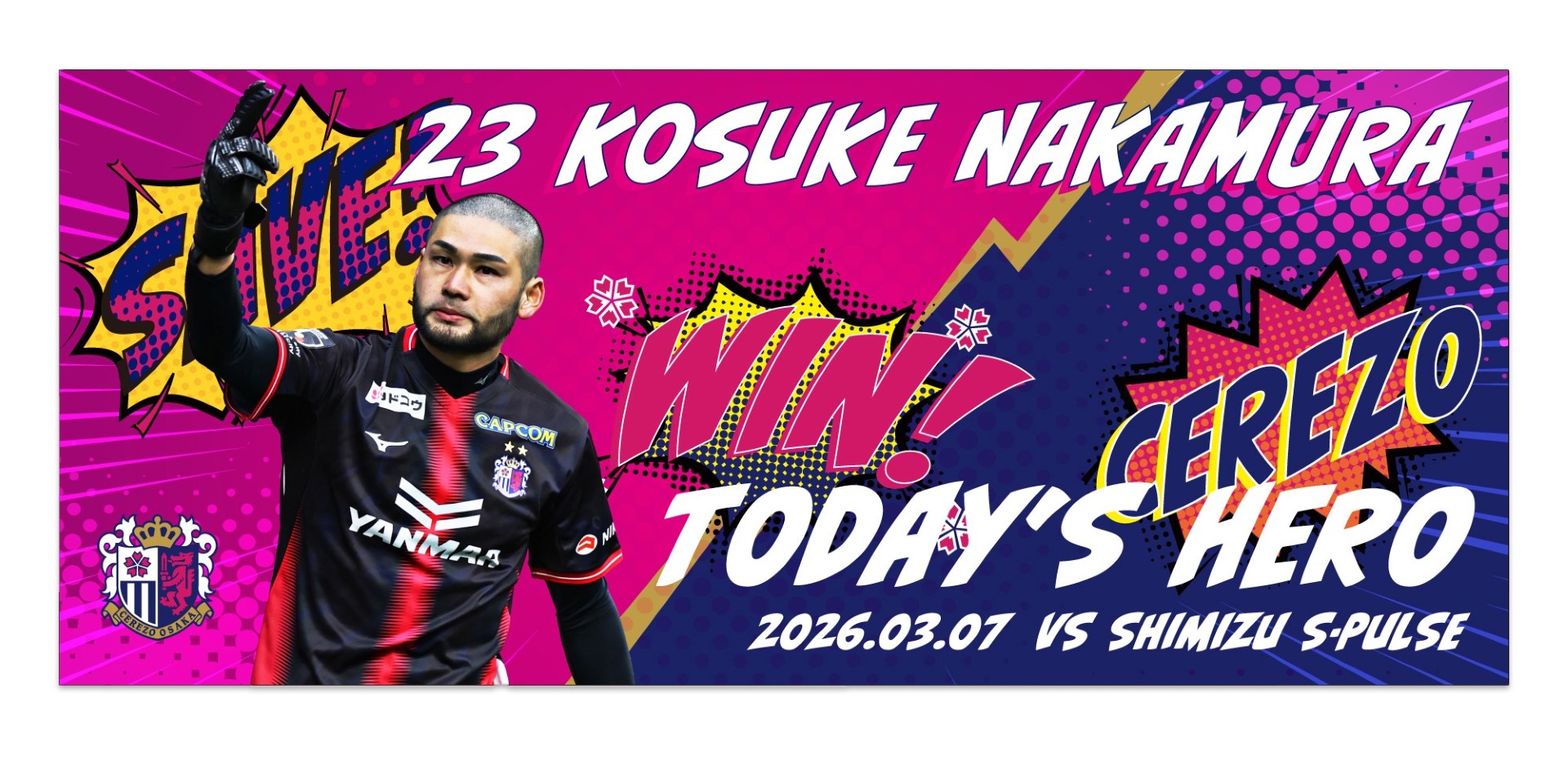 3/7(土)に開催された明治安田J1百年構想リーグ第5節清水エスパルス戦にてヒーローに選出された、中村 航輔選手の“Heroグッズ”を販売いたします!