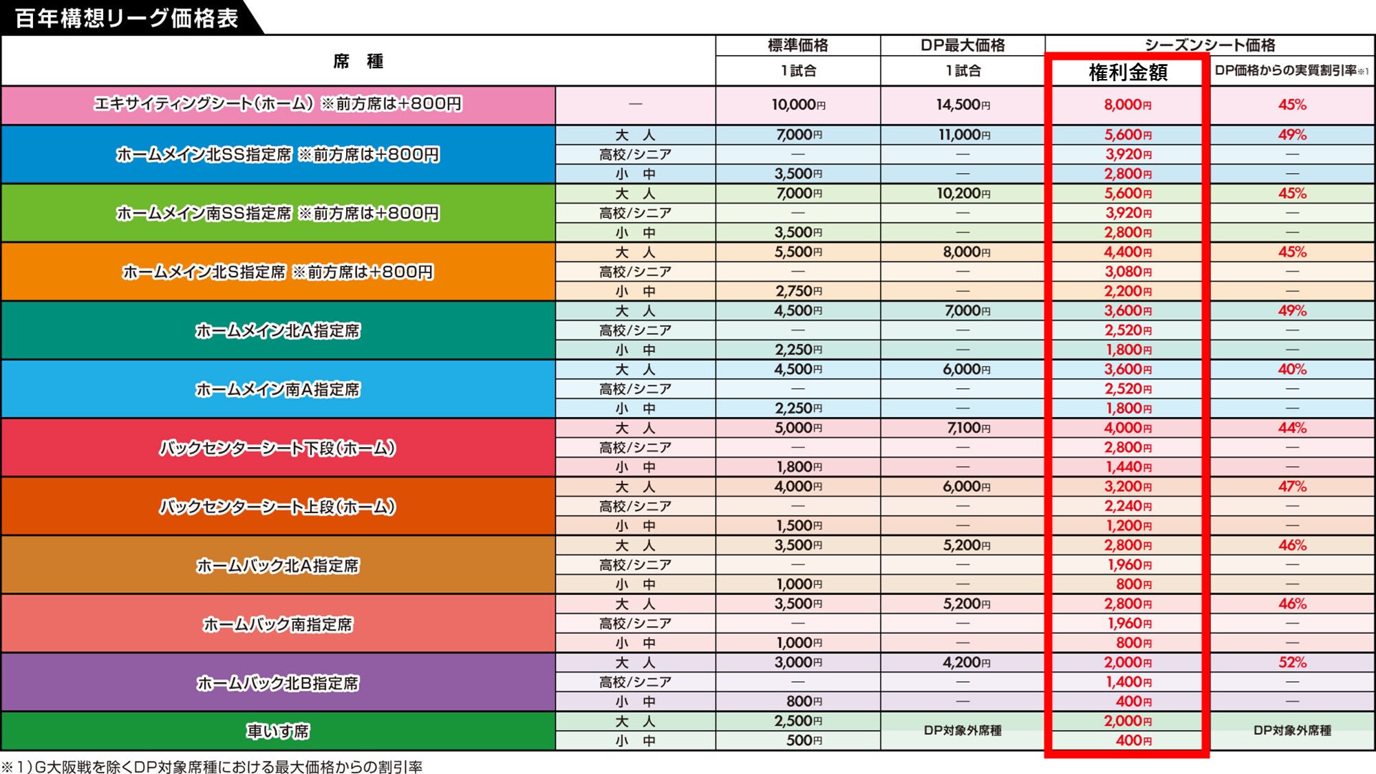 百年構想リーグシーズンシート購入者