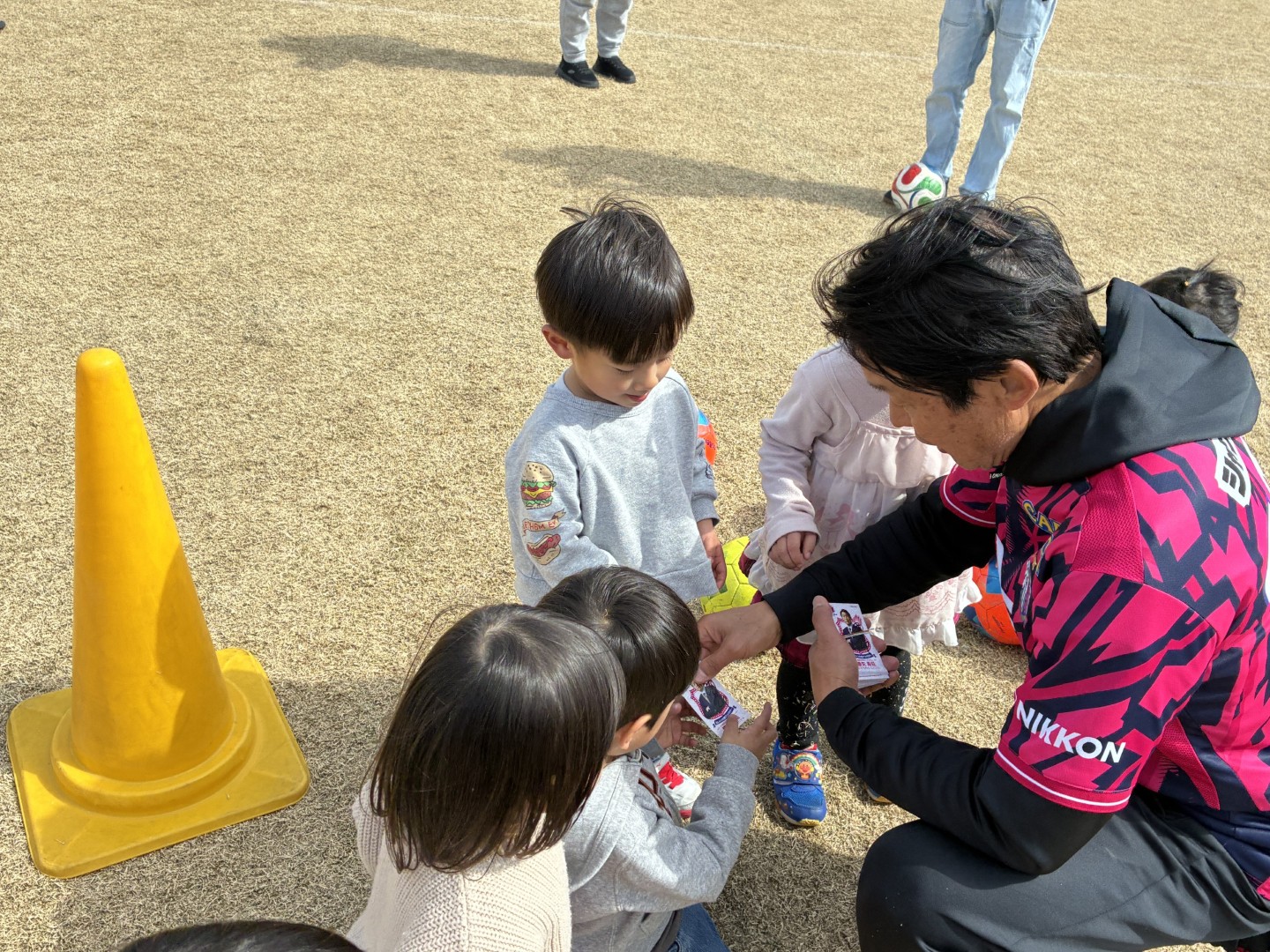 ヤンマーフィールド長居の天然芝の上で、勝矢 寿延アンバサダーとスクールコーチたちが楽しくサッカーを指導しました。サッカー未経験のお子さまも、元気いっぱいにボールを追いかける姿が印象的でした。見守る保護者の皆様も、お子さまの楽しそうな様子をスマートフォンで撮影されるなど、和やかで笑顔あふれる時間となりました。