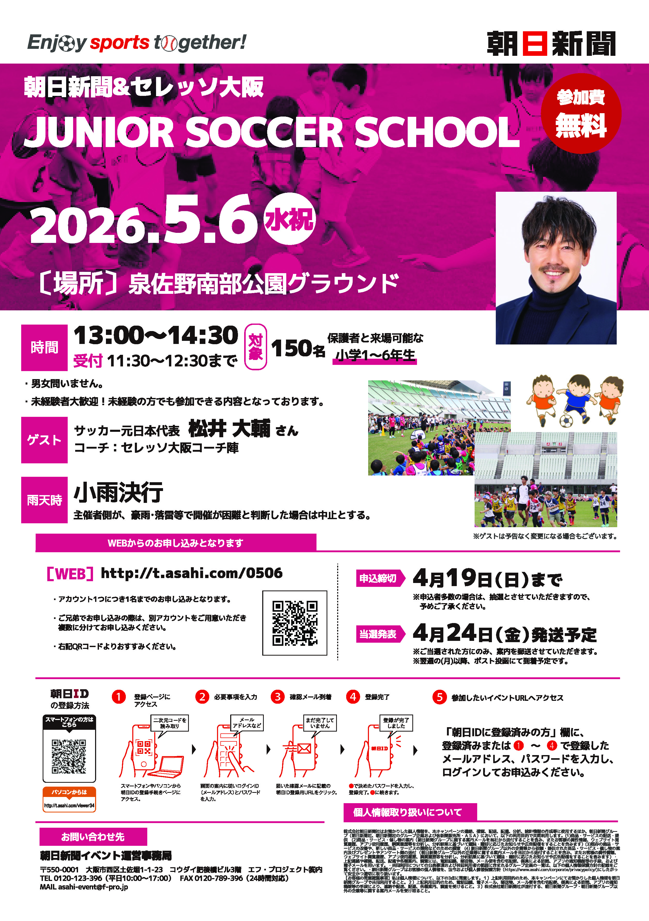 松井大輔さん参加!朝日新聞&セレッソ大阪ジュニアサッカースクール開催