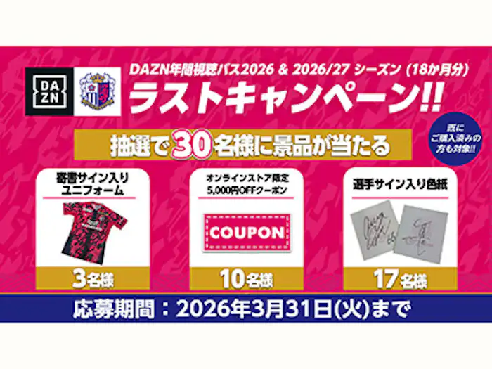 DAZN年間視聴パス2026 & 2026/27 シーズン (18か月分) ラストキャンペーン開催!