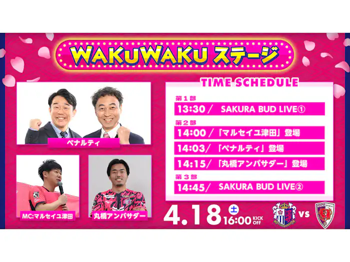 ペナルティのお二人がYANMAR HANASAKA STADIUM初戦に来場決定!