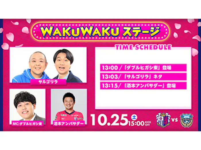 WAKUWAKUステージ開催!「サルゴリラ」のお二人、「ダブルヒガシ 東」さんが登場!!